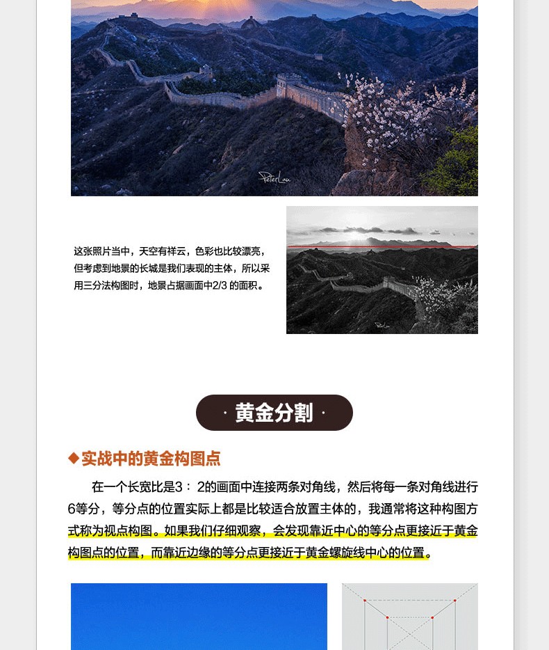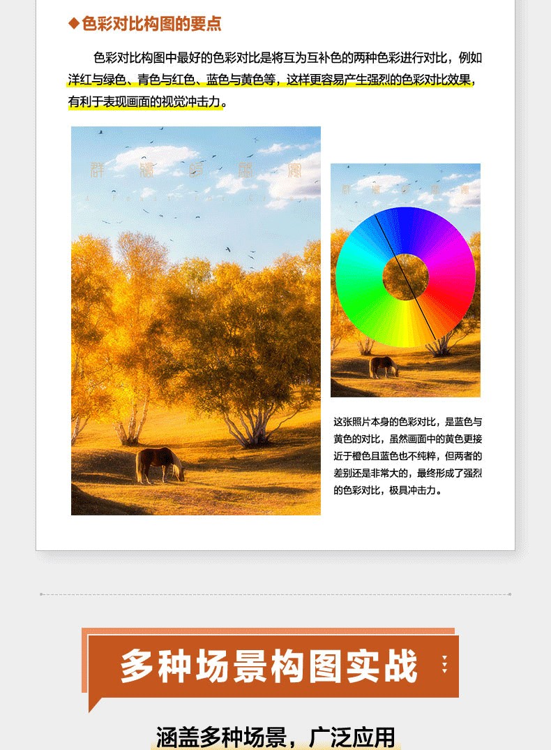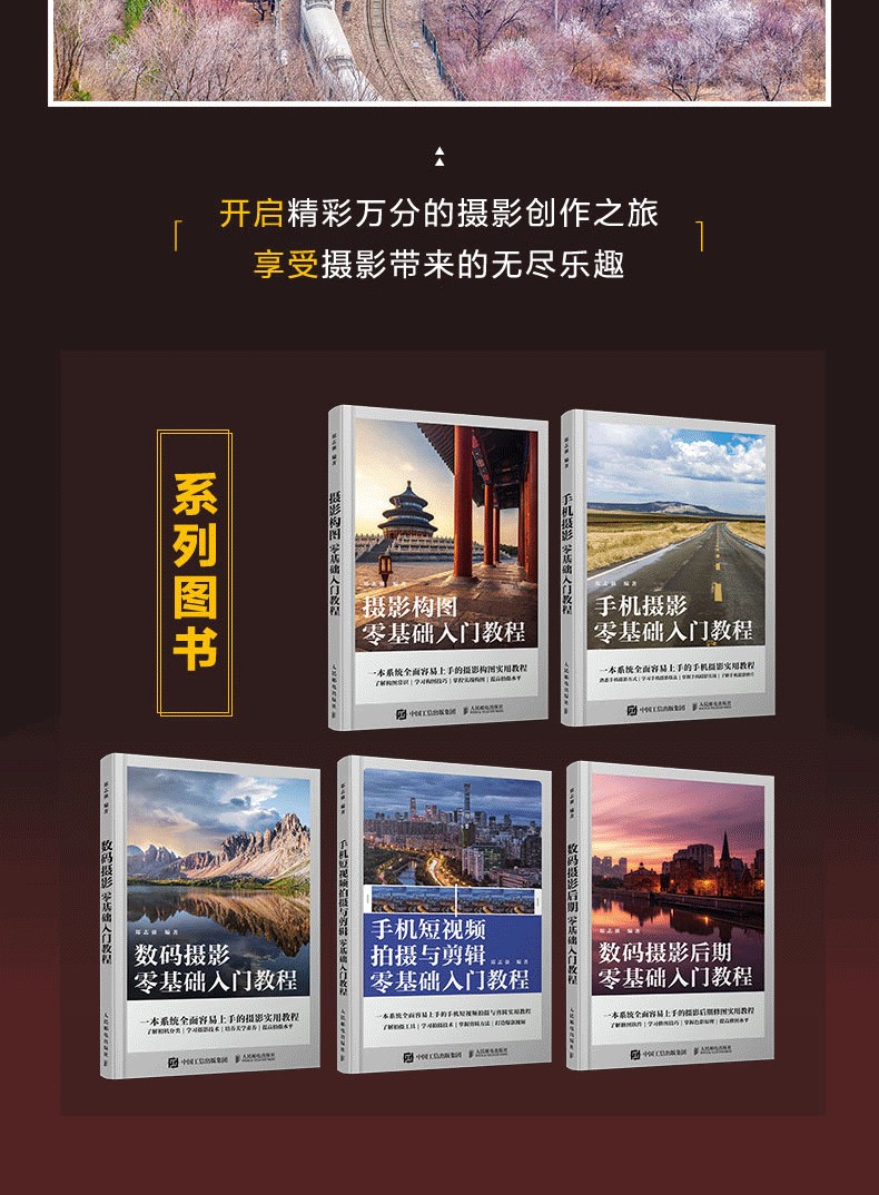 調整前後對比圖展示,讓你可以直觀感受到知名構圖對作品的巨大影響; 引入輔助線講解,化繁為簡,讓晦澀的攝影術語也能一看就懂; 自然風光、人物、動物、街拍等主題實戰構圖技巧講解,讓你可以真正應用到自己的攝影作品中。