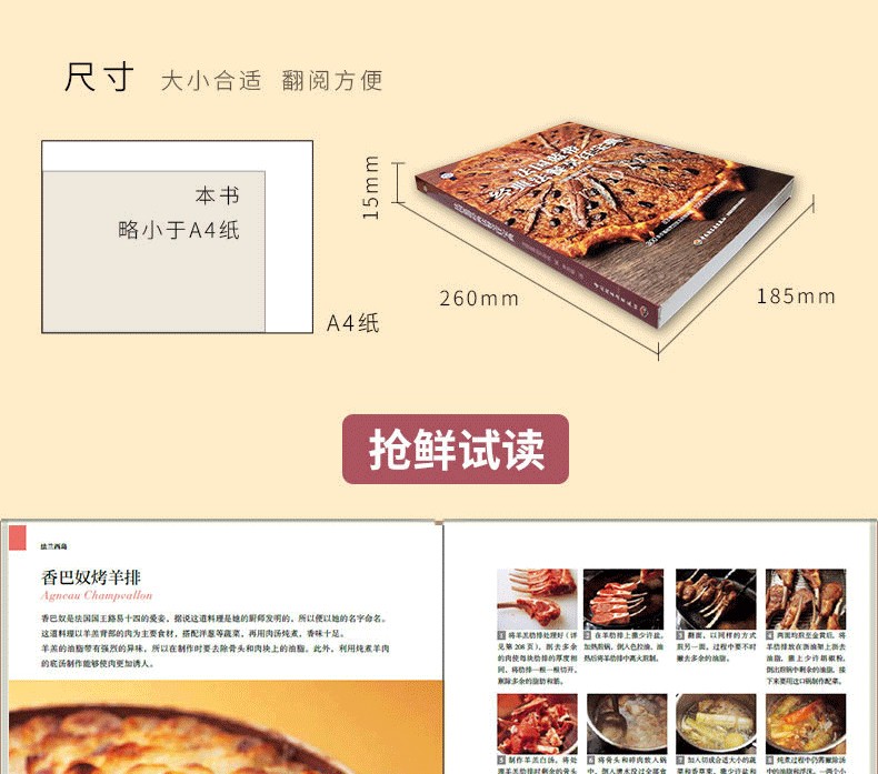 收錄原汁原味的經典法式料理,凝聚不同地區的風土特色與傳統技藝,多方面領略舌尖上的法國 詳細講解基礎烹飪技法,從底湯、醬汁、面坯、配菜的做法到肉類、蔬菜、海鮮的預處理,讓法餐製作不再高不可攀 高清美圖將成品和製作步驟清晰展現,真實還原每一道法式料理的本來面貌 全面了解不同地區各異的地理氣候、人文歷史、特色物產及飲食文化,足不出戶盡覽魅力法蘭西!