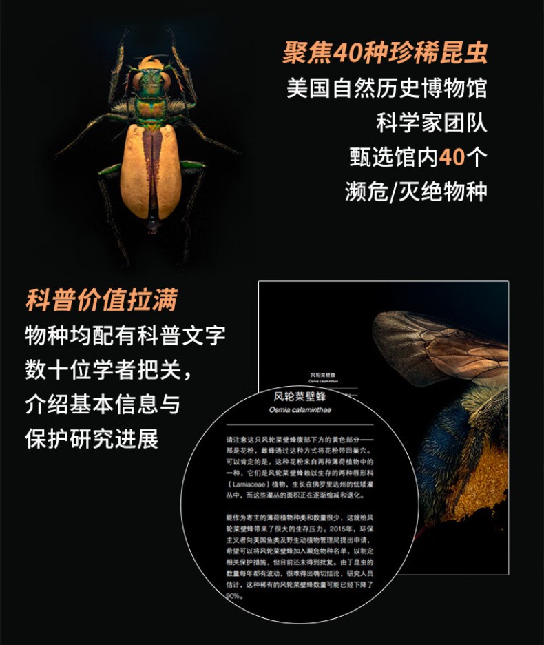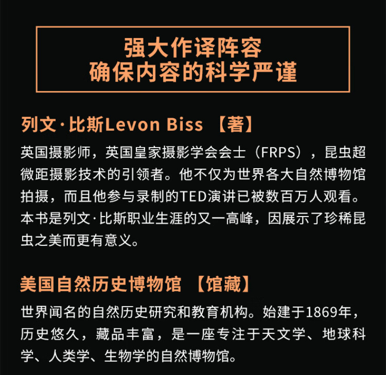 《牛津大學終ji昆蟲圖鑑》甄選牛津大學自然史博物館700 多萬昆蟲標本,其中包括達爾文等時代先驅收集的珍品,由攝影藝術家列文· 比斯透過開創性的超微距攝影技術,捕捉到昆蟲前所未*的肖像。