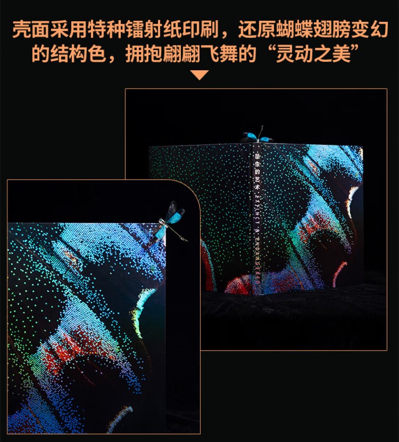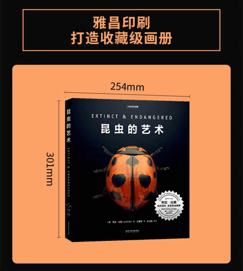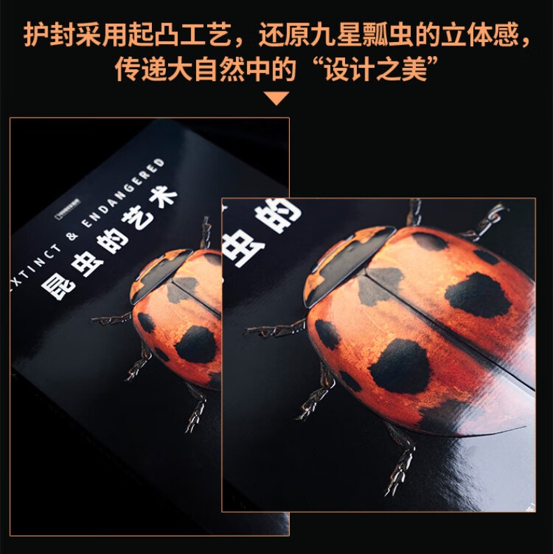 藝術品級的畫冊,經得起時間考驗的收藏之作。與「國際印刷大獎收割機」雅昌藝術印刷聯手,採用高水準的色彩管理與印刷技術,高品質呈現每個物種的細節與色彩。護封採用起凸工藝,還原九星瓢蟲的立體感,殼面採用特種鐳射紙印刷,還原蝴蝶翅膀變幻的結構色。