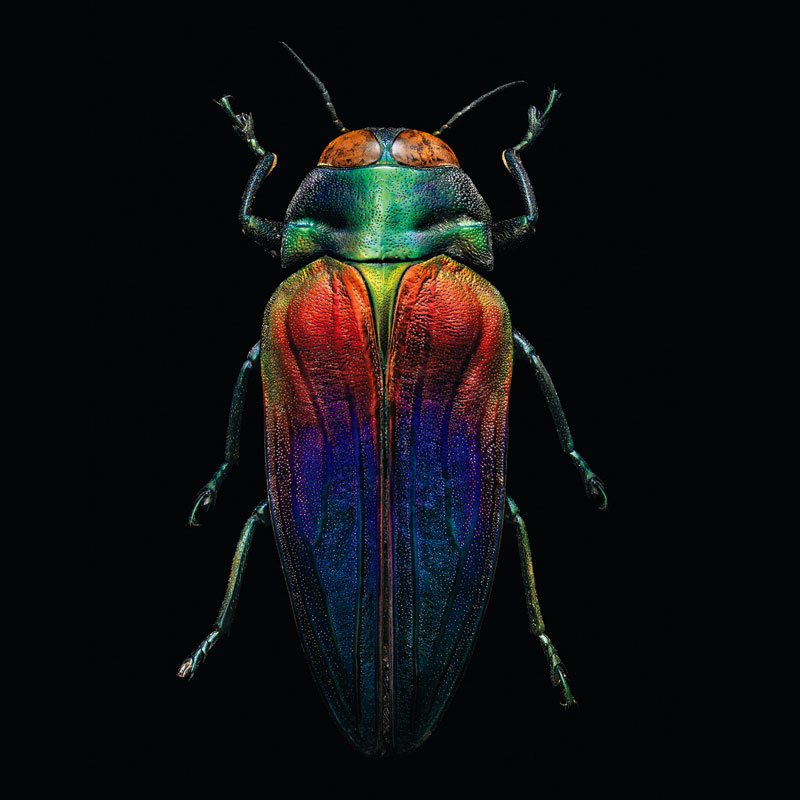 昆蟲有著驚人的複雜性,卻體型太小,讓我們無法觀察它的真正結構與形狀。借助高倍光學顯微鏡和相機鏡頭的力量,將昆蟲的微小形態展現在驚人的高分辨率下,每隻昆蟲被分成大約30個不同的部分進行拍攝,透過8000 多張獨立的局部照片,合成一隻昆蟲的完整肖像。每隻昆蟲都化身為龐然大物,色彩鮮明,脈絡清晰,纖毫畢現,創造出自然界中鮮明和生動的色彩!