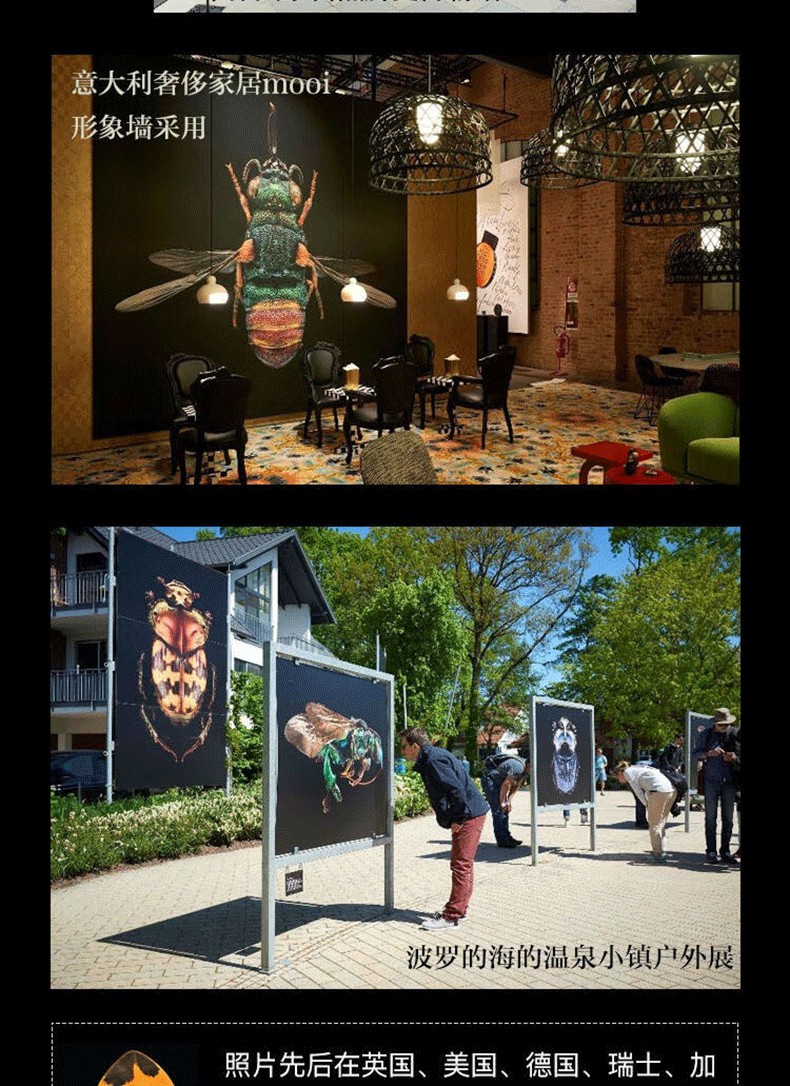 所有的收藏品都被送到比斯的工作室,他在那裡創作了令人驚豔的昆蟲肖像,這些肖像被放大到真實昆蟲大小的300倍,展現出生動的生命形式和色彩細節,這是我們肉眼看不見的世界。這本畫冊讓人們看到了這些微小、不為人知的生物所帶來的視覺震撼、潛在的巨大藝術價值和科研意義。