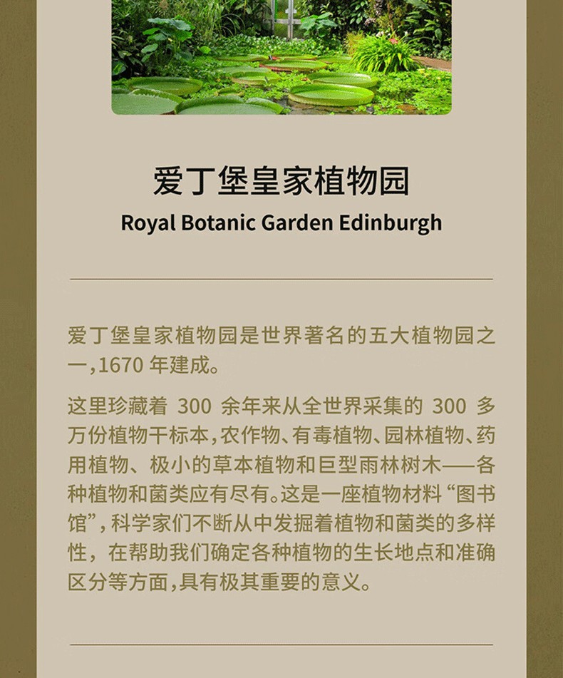 在漫長的歷史過程中,科學家持續利用植物標本館發掘植物和菌類的多樣性。在這裡,農作物、有毒植物、庭園植物、藥用植物、極小的草本植物和巨型雨林樹木— 各種植物和菌類應有盡有。這座位於愛丁堡的植物標本館,是一座植物材料“圖書館”,在幫助我們確定各種植物的生長地點和準確區分它們等方面,具有極其重要的意義。