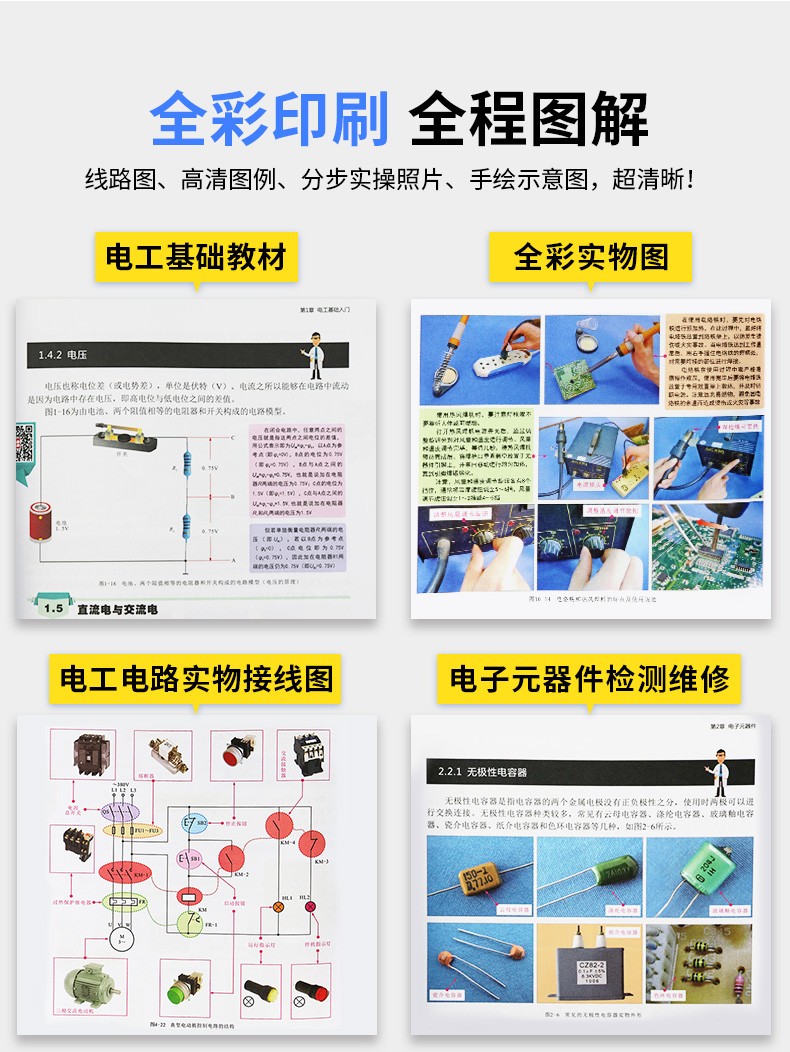 本書對電工知識的講解全面詳細,理論和實踐操作相結合,內容由淺入深,語言通俗易懂,全書內容彩色圖解,層次分明,重點突出,非常方便讀者學習。