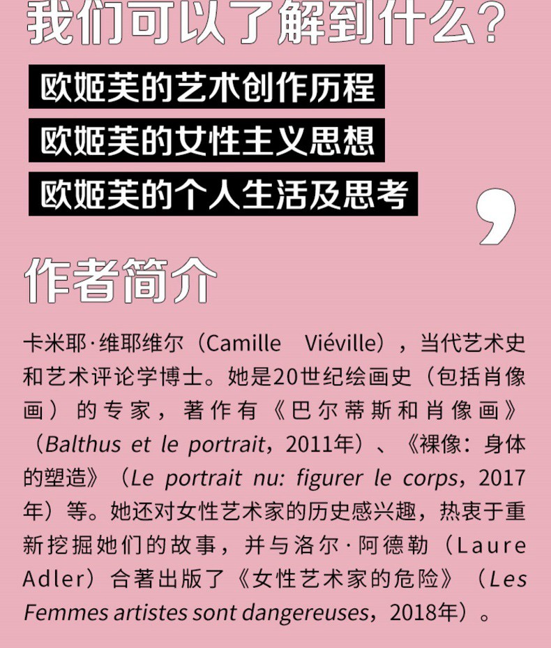 這本書源起於我的一個觀察:雖然喬治亞‧歐姬芙的作品在20世紀的美國藝術界具有舉足輕重的地位,但在法國及其他國家卻無人問津。 1986年3月6日歐姬芙逝世,記者兼藝術評論家熱納維耶芙·布勒雷特(Geneviève Breerette)在《世界報》(Le Monde)上表示遺憾:「美國博物館選擇在很顯眼的區域展出歐姬芙的作品,那裡的觀眾對她的作品早已如數家珍,但這些作品卻很少在歐洲展出,非常遺憾。不過,現在填補這個空白或許為時未晚,讓我們一起來探究這位無法被歸類的畫家身上所具備的獨立性、獨創性和啟發性。」