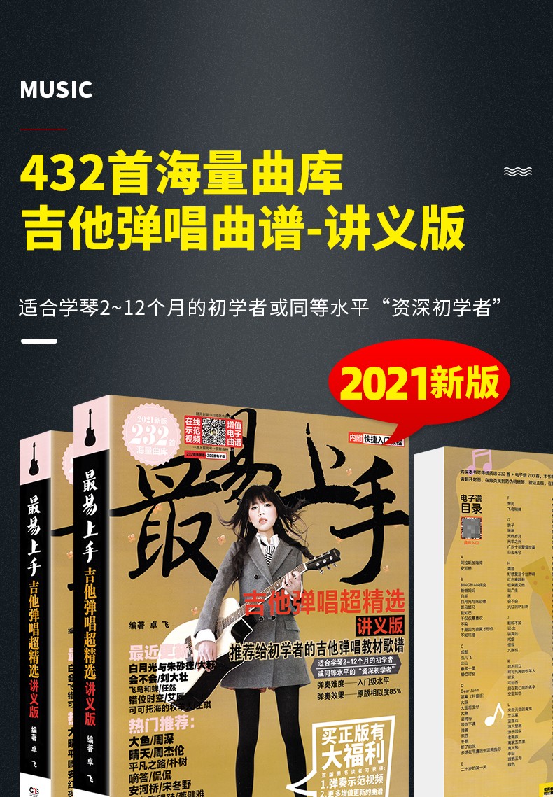 【全新正版】2冊 吉他教學 最易上手吉他彈唱超精選(講義版)【附贈超詳細視頻教程】彈唱超精選432首海量曲庫流行歌曲【入門】零基礎初學者都可以學 詳細講解,淺顯易懂,零基礎一看就會!搭配教學視頻,快速上手,自彈自唱! ! !