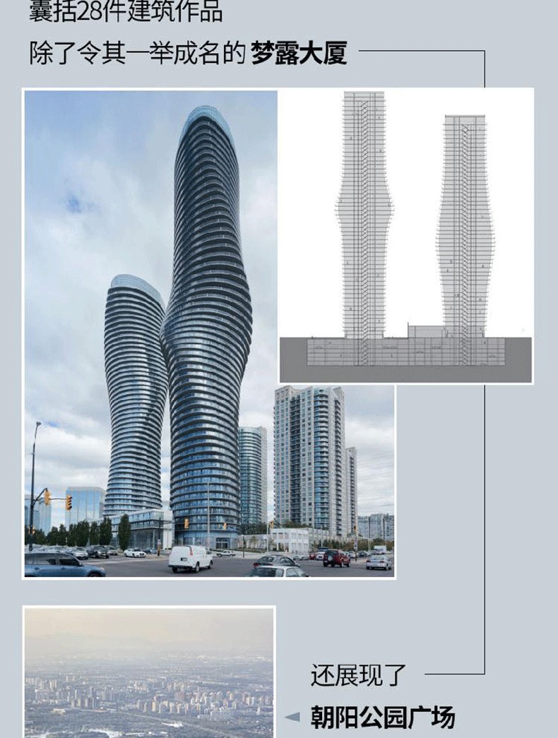 3.MAD建築作品的重要起源,隱藏於馬岩鬆的藝術作品,探索二者關係,重新理解MAD的建築。馬岩鬆的藝術作品《魚缸》既是魚的建築,也是對現代建築的隱喻性挑戰,即人不應局限於生活在一個普通幾何形狀的盒子裡。它為夢露大廈的誕生提供了重要概念性材料。橢圓形樓板建造起旋轉大廈,不再使用垂直線條來強調高度,連續的水平陽台環繞整個樓層,當光線穿過反光玻璃表面,便放大了周圍景物的日間變化,大廈形態千變萬化,看起來剛柔相濟、張弛有度。