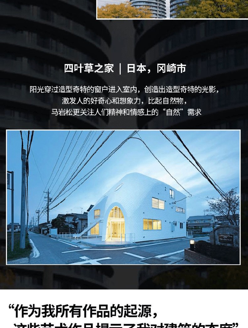 1.新一代建築師的重要聲音與代表,首位在海外贏得重要標誌性建築設計權的中國建築師-馬岩松的建築作品集。透過28件建築作品,深入了解馬岩松的建築與自然、空間的關係,沉浸式觀賞馬岩鬆的建築世界。馬岩鬆的建築關注人們精神和情感上的「自然」需求,利用不規則、自由的線條使建築與環境關聯,代表作哈爾濱大劇院線條平緩起伏,似山、似水,似自然界任何東西,將自然在現代化城市中創造多重意義。