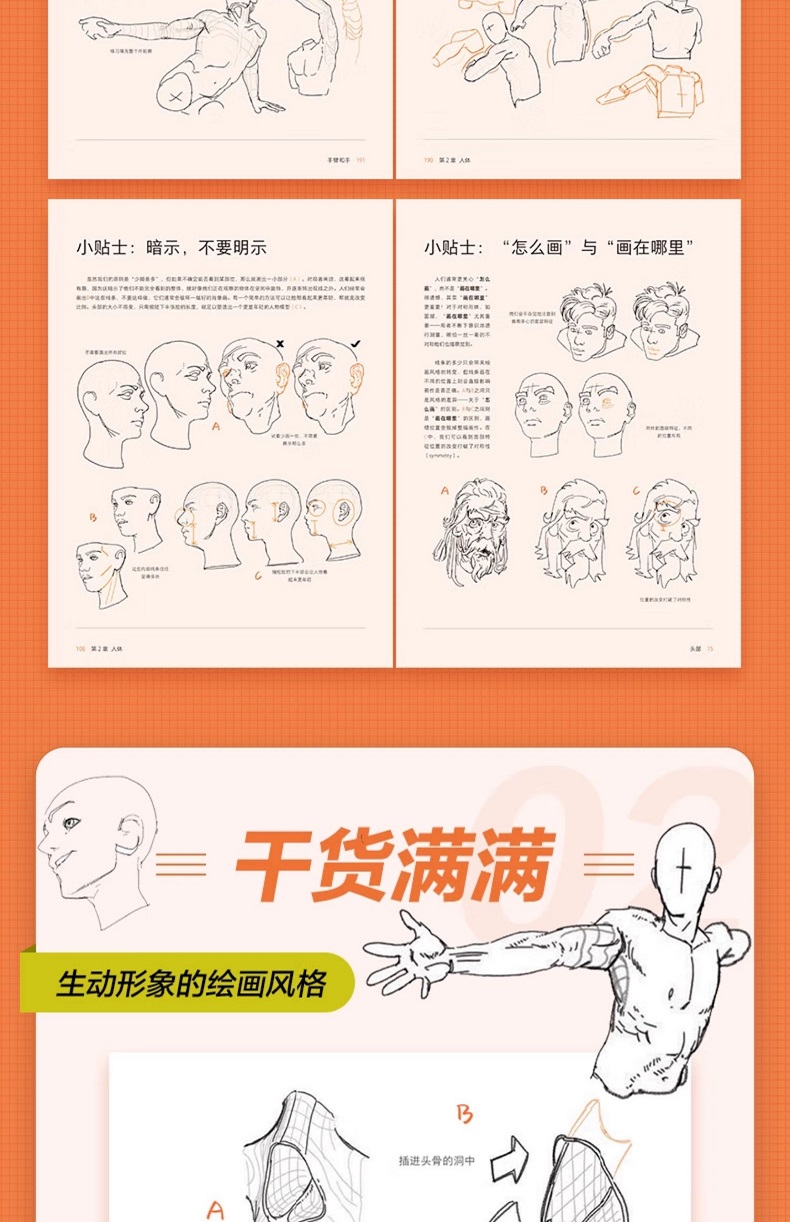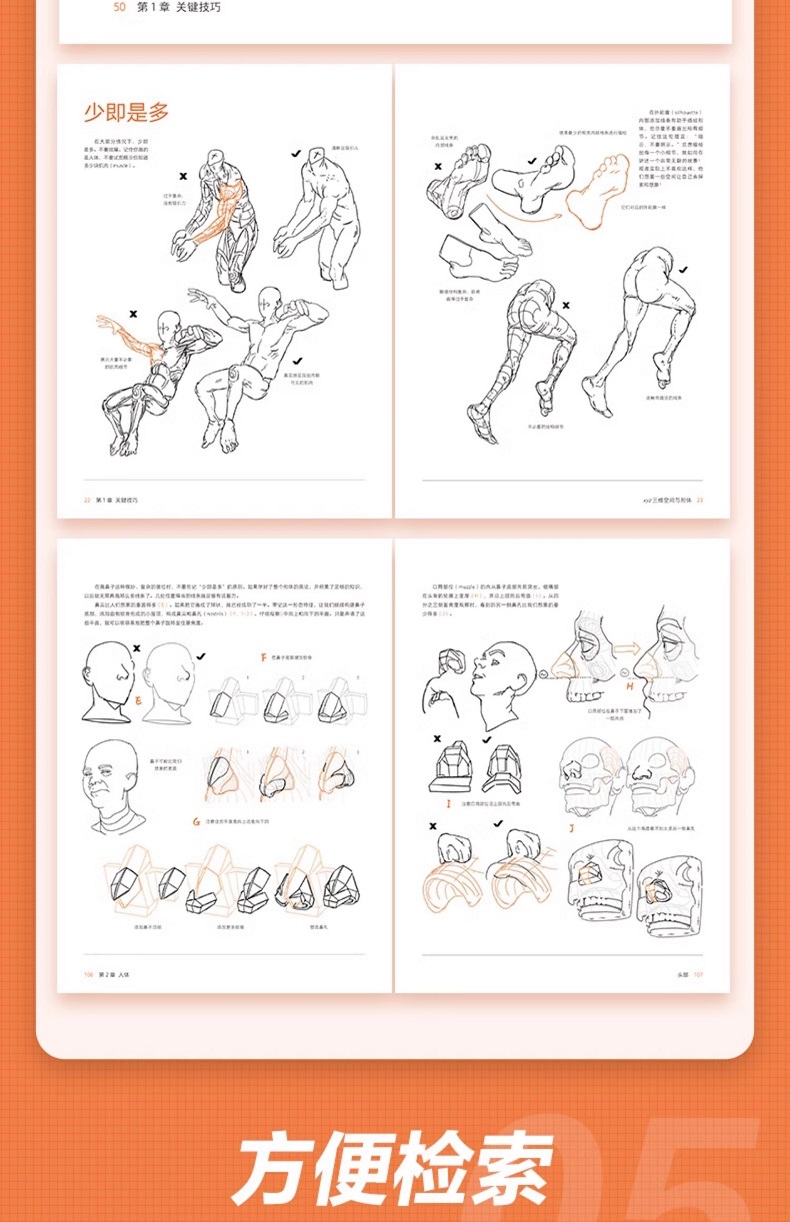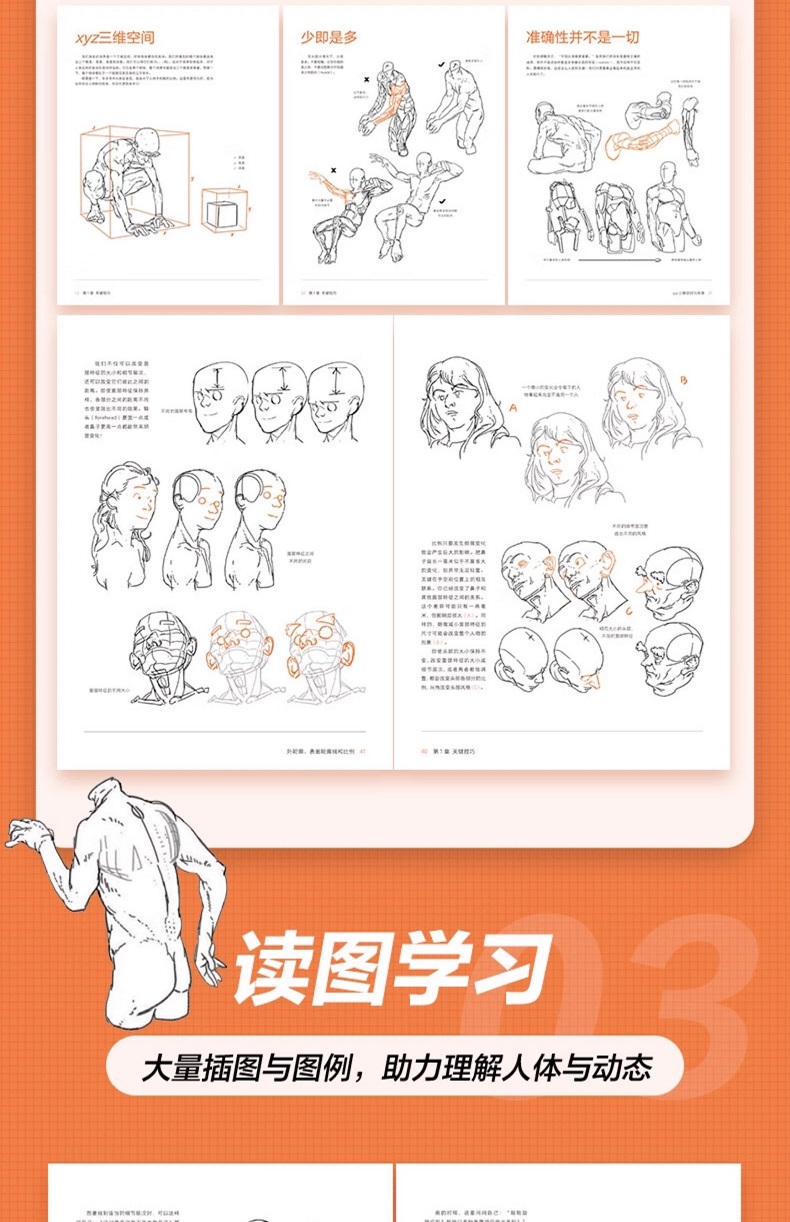 本書共2章。第1章從“xyz三維空間與形體”“外輪廓、表面輪廓線和比例”“細節層次”“盒子模型”“相機與透視”5個方面介紹了繪製人體的關鍵技巧;第2章從“頭部”“軀幹上半部”“手臂和手”“核心”“腿和腳”5個方面介紹了人體各部分的具體畫法。