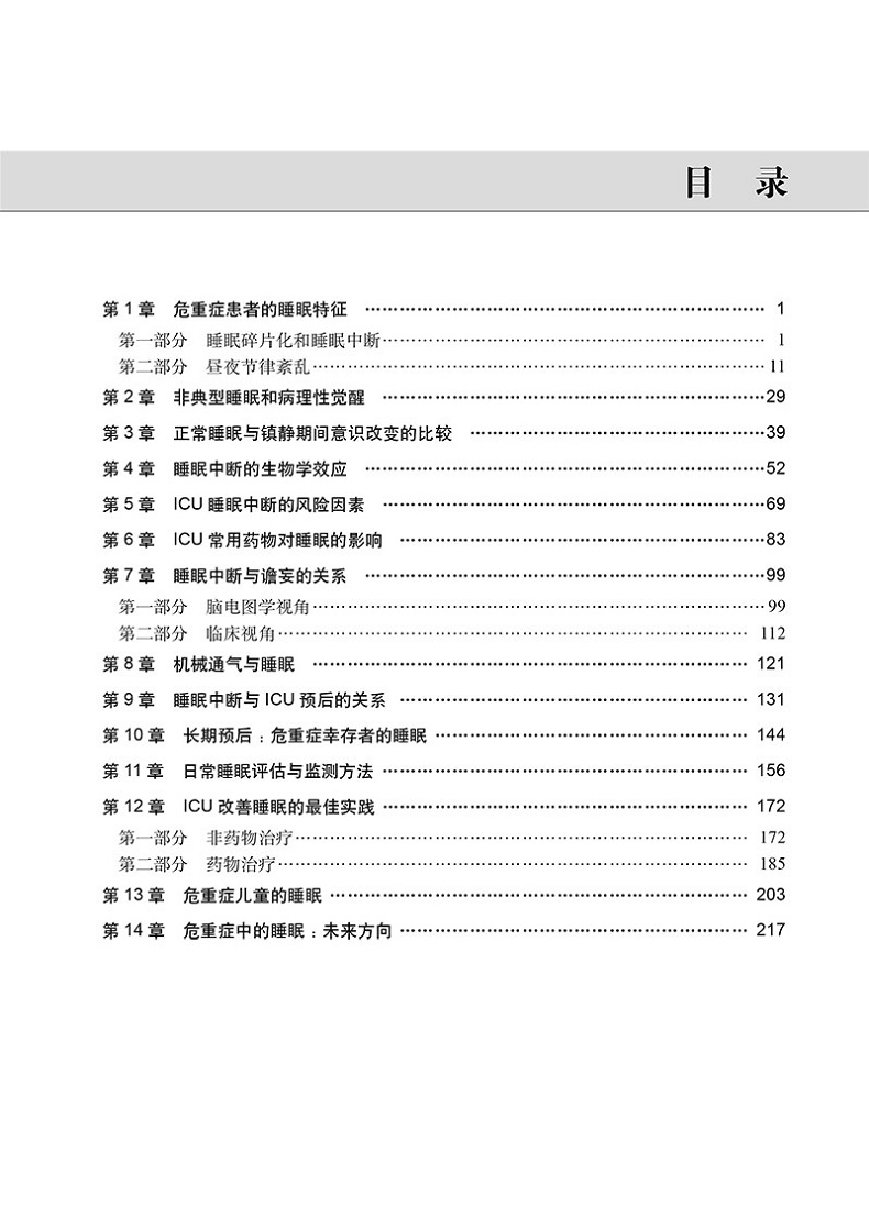 本書深入闡述了重症醫學與睡眠醫學的相互關係和相關專業知識,以及國外新的研究成果。共分為14章,內容主括重症病患的睡眠特徵、非典型睡眠及病理覺醒、ICU睡眠中斷的生物效應及相關危險因子、機械通氣與睡眠、睡眠中斷與ICU預後的關係,以及如何透過睡眠改善重症病患的預後等。介紹了在ICU各種危重病症的監測、搶救、中病患的睡眠,睡眠障礙對重症病患的危害和與非等內容。本書內容系統,是重症醫學和睡眠醫學領域一本重要的參考書。