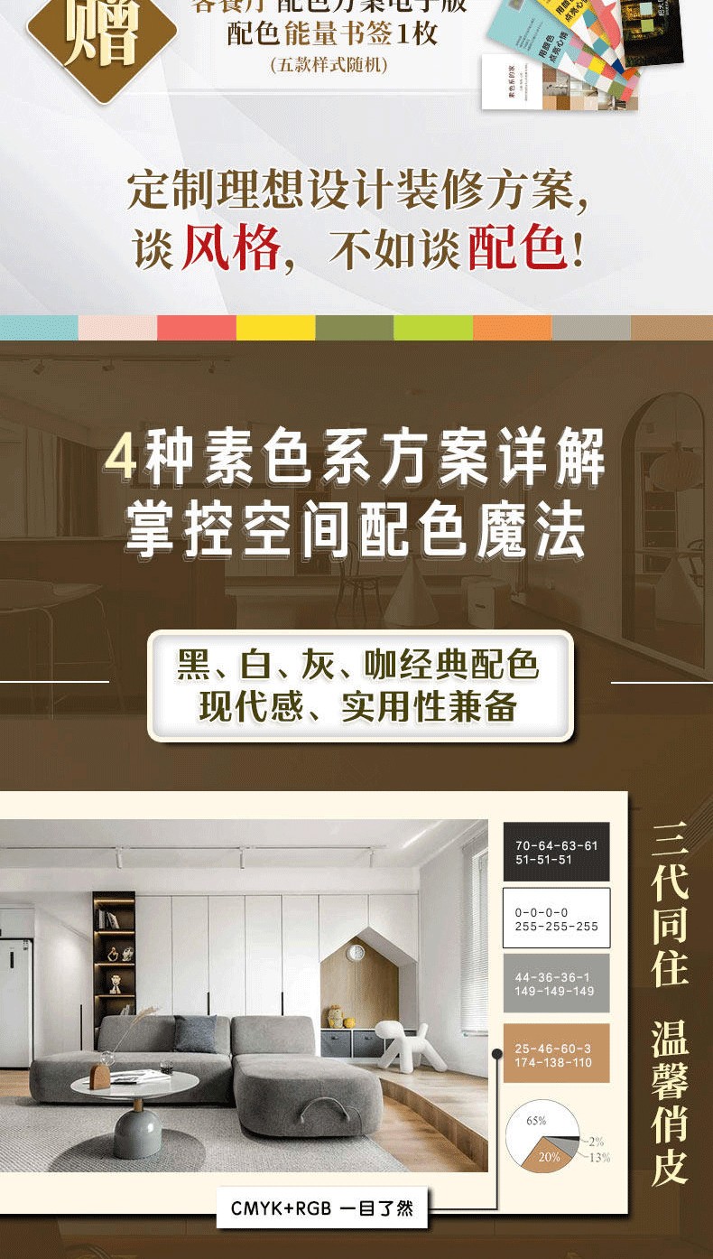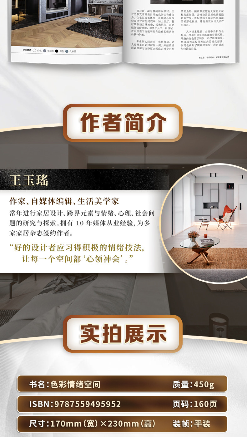 《色彩情緒空間》為您提供了清晰易懂的配色邏輯與十大實用技巧。從不會出錯的三色比例,到生動活潑的互補色搭配;從和諧的單色漸進,到利用光線與材質層次感……無論您是配色新手還是希望進階,都能在此找到靈感與信心,讓色彩回歸居住本質,表達家的個性。理論服務於實踐。 《色彩情緒空間》精心收錄了18個真實居家配色案例。從活潑多彩的親子空間,到簡約的現代風格……每個案例都生動詮釋瞭如何將色彩理論轉化為觸手可及的生活場景。
