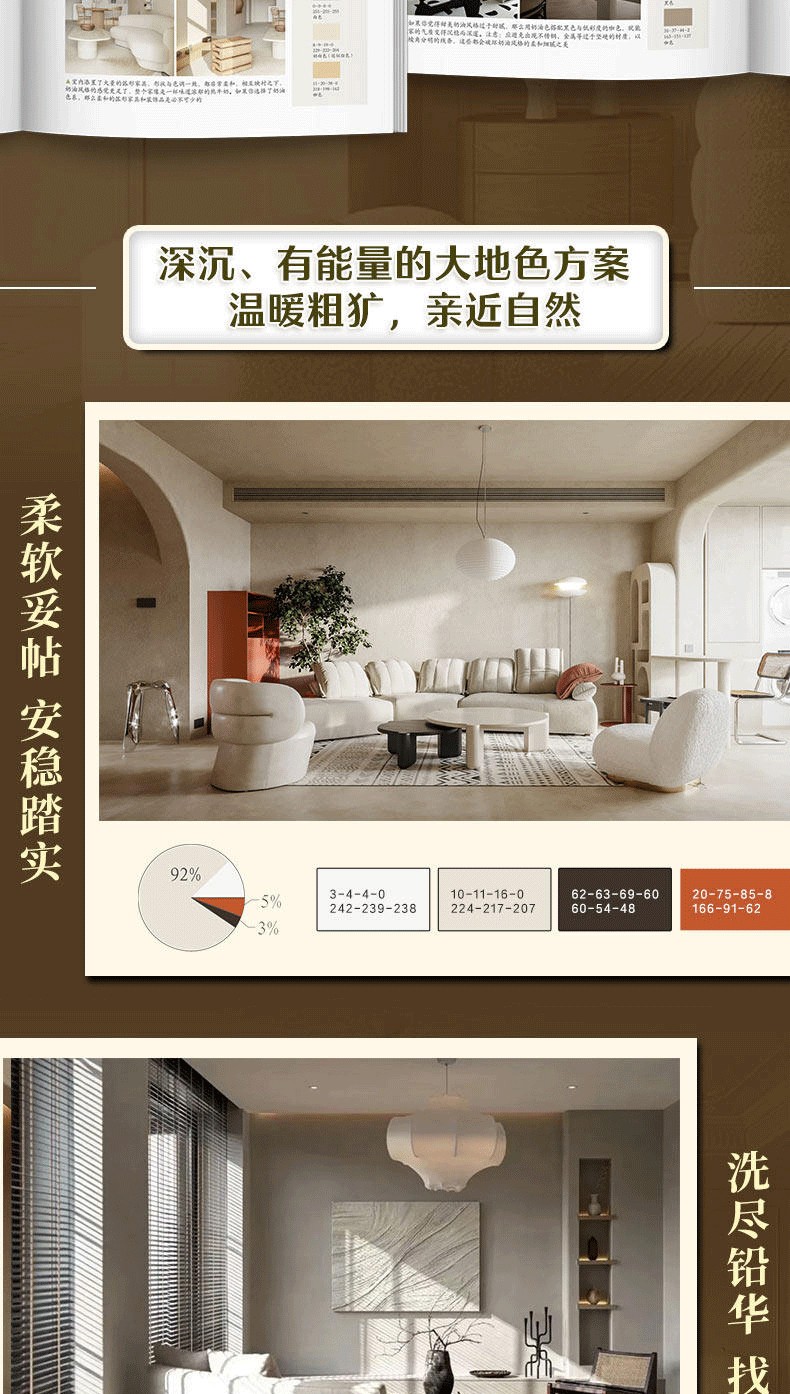 首章:關於色彩,你該懂得這些事。色彩認知與素材庫構建,本章將從基礎出發,系統整理冷色系、暖色系、中性色、大地色和白色系的情緒密碼。更重要的是,《色彩情緒空間》將視野拓寬至“漆色之外”,教你如何綜合運用裝修材料、家具、家飾與綠植等多種元素,共同編織空間的色彩交響,為你的創意提供豐富的素材庫。
