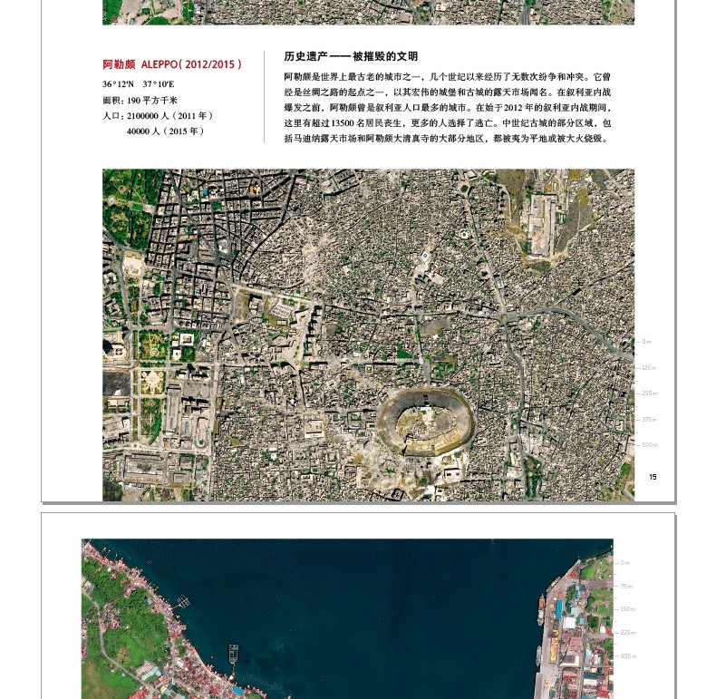 本書收錄了百餘幅高清衛星攝影圖像,展示了世界不同類型城市的規模、結構的多樣性,並用言辭優美的文字簡要介紹了當地自然條件、城市特徵及風土人情。從距離地球400千米到900千米的高空俯瞰地球,無論是流光溢彩的國際大都市倫敦、巴黎,還是人跡罕到的安第斯山脈中的“金城”,抑或是空無一人的“鬼城”普里皮亞季,城市的豐富色彩無時無刻不在衝擊著人們的視域,在人類中留下墨重彩的一筆文明。