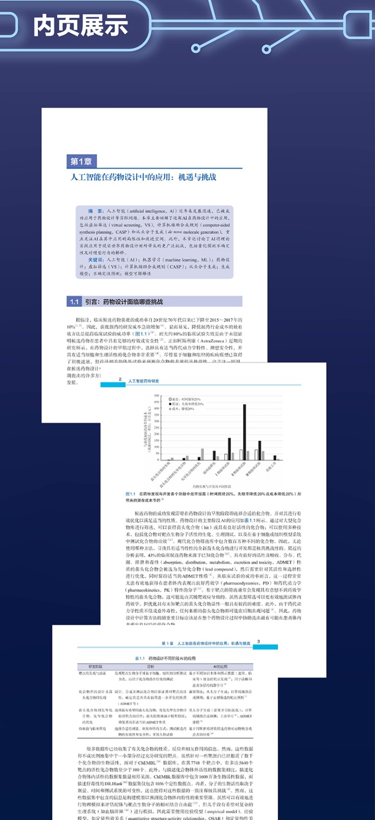 ② 目標面向藥物科學、生命科學領域與電腦科學領域的交叉研究。分別以介紹人工智慧演算法與藥物設計原則為基礎,闡述基礎原則;介紹交叉應用與研究進展,讓讀者概覽前沿內容;之後提供程序程式碼實例,讓讀者學以致用,進行實戰練習。 「教-學-用」一脈貫通。