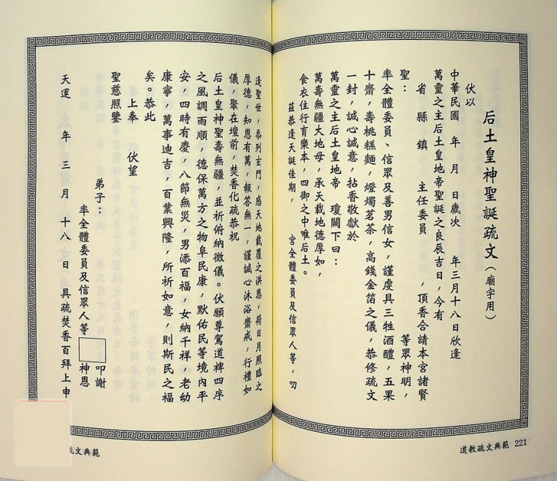 至尊玉皇上帝萬壽疏文(廟宇用)