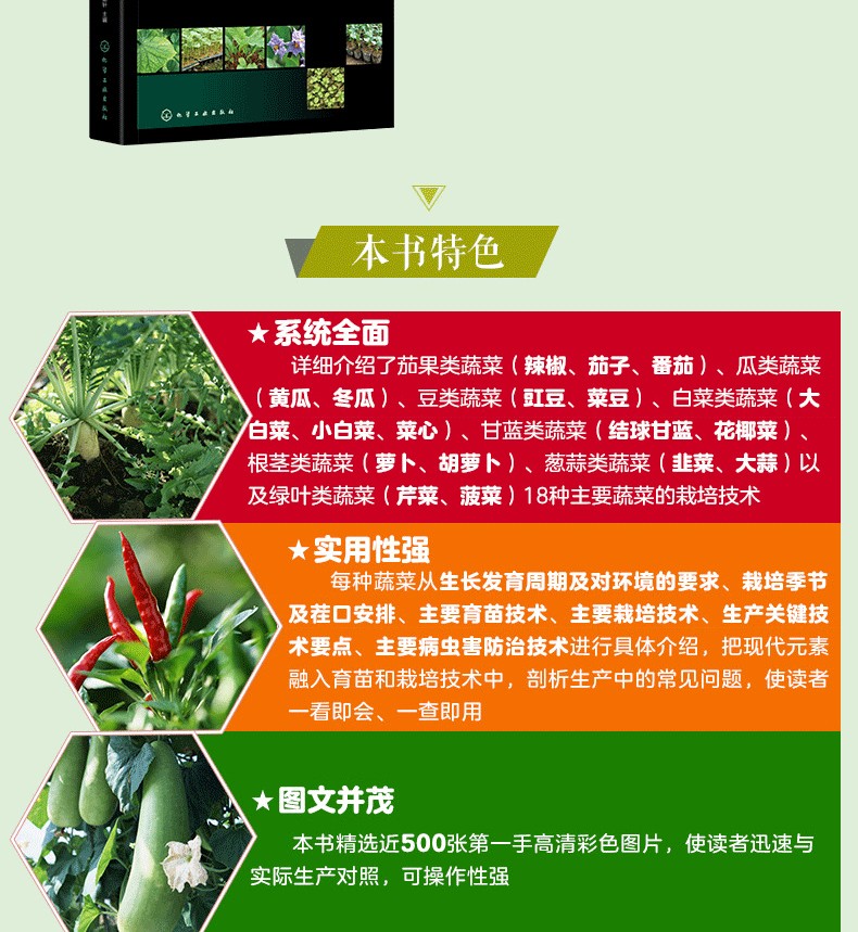 本書根據18種主要蔬菜的發展形勢,把現代元素融入育苗和栽培技術中,詳解蔬菜生產中的關鍵技術要點,圖解當前蔬菜的主要病蟲害,對促進現代蔬菜栽培技術的發展有一定的意義。本書通俗易懂,圖文並茂,適於蔬菜合作社、蔬菜公司、蔬菜協會、家庭農場、廣大菜農等閱讀參考,以對蔬菜生產進行規範化、程式化管理。