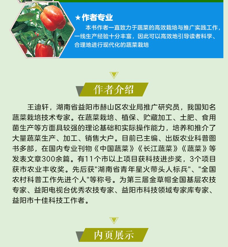 王迪軒,湖南省益陽市赫山區農業局,農業技術推廣研究員,1989年畢業於西南農業大學,曾任益陽市赫山區蔬菜局副局長,高級農藝師,知名蔬菜栽培技術專家。在蔬菜栽培、植保、貯藏加工、土肥、食用菌生產等方面具較強的理論基礎和實際操作能力,培養和推介了大量蔬菜生產、加工、銷售大戶。在國內專業刊物《中國蔬菜》《蔬菜》等發表蔬菜文章300餘篇,在《農民日報》等報刊發表蔬菜科普文章及圖片新聞達2000餘篇幅。有11個市以上項目獲科技進步獎,3個項目獲市農業豐收獎,16個項目獲區科技進步獎。先後獲湖南省青年星火帶頭人標兵、全國農村科普工作先進個人稱號,湖南省註冊科技諮詢師資格,益陽市專家聯合委員會會員,《蔬菜》雜誌技術顧問,全國科普日先進個人。經常下鄉講課或現場指導蔬菜生產,先後引進蔬菜新品種100餘個,新農藥120多種,新肥料12種,推廣蔬菜配套栽培技術30多套,主要參與益陽市20種蔬菜栽培技術規程的製定。