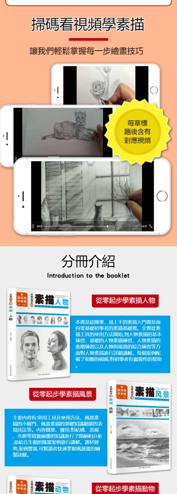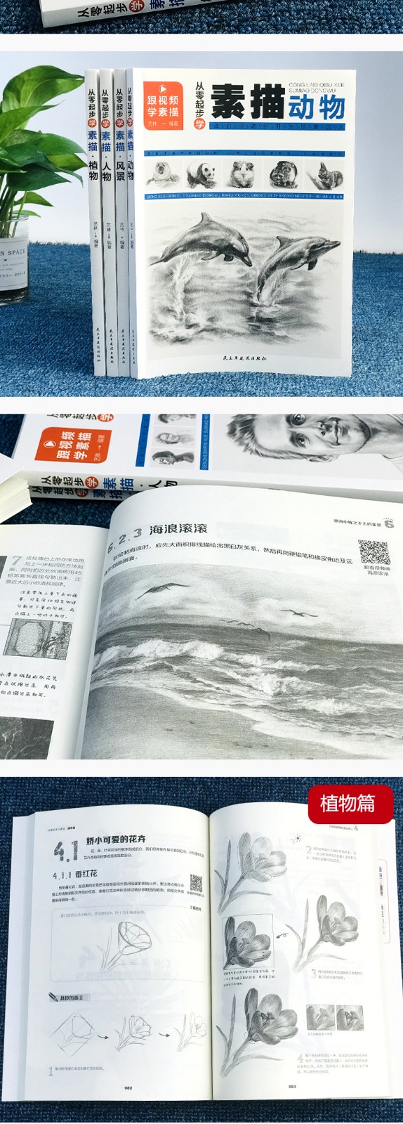 【全套4冊】从零起步学素描 零基础教程从入门到精通 植物动物风景人物素描速写