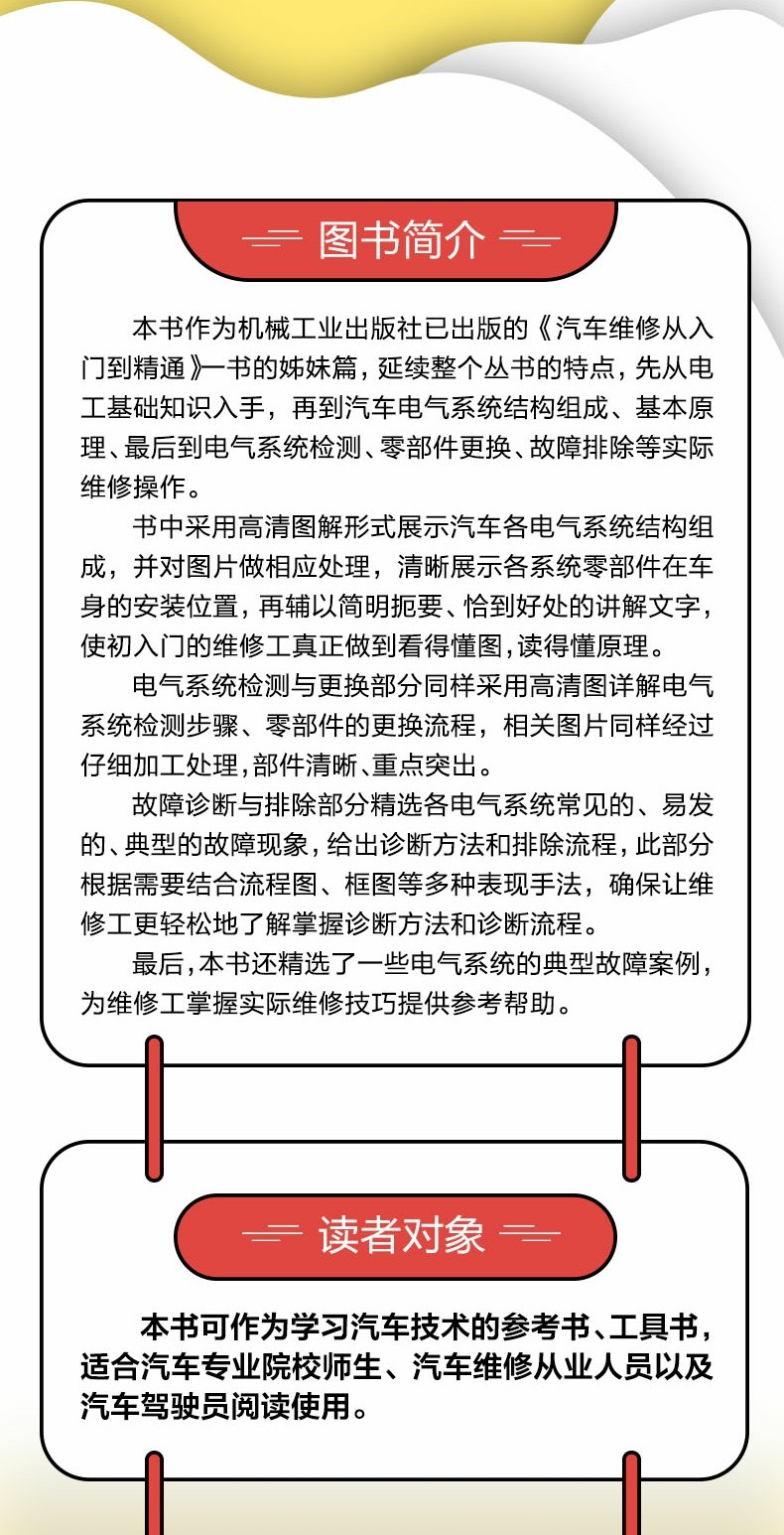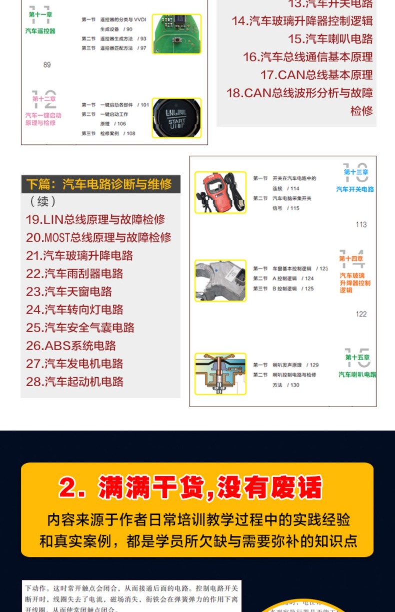 60個影片 高清解析汽車電工維修技能從17個電路基礎知識專案、檢測工具和儀器到15個汽車電氣系統檢修和故障診斷,真正做到全面自學汽車電工。