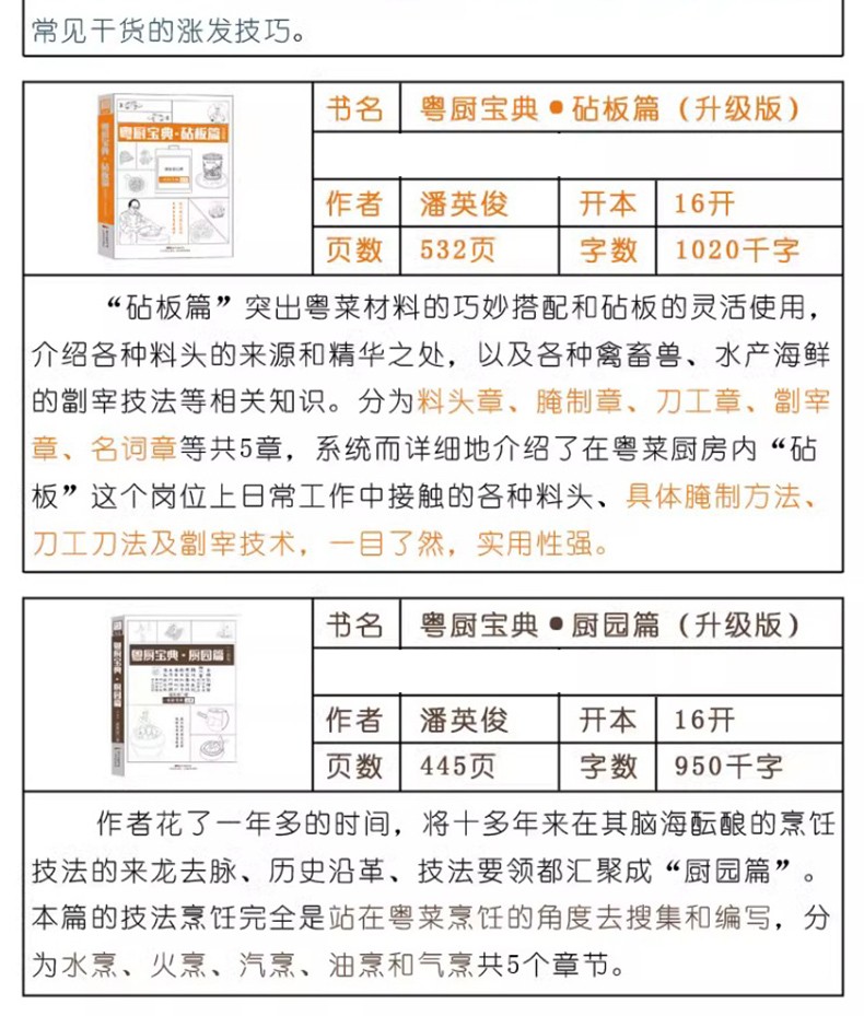 潘英俊,早年在廣州飯店燒鹵部工作,獲香港「美食天王」、鏜記酒家第二代傳人甘鍵成指點,對燒滷有精深研究。先前曾著一套6冊堪稱粵菜工具書的「粵廚寶典叢書」(本次新出版的為升級版),廣獲業界口碑。現在從事食品工業化研究,對食品質感提出新的概念,為烹飪製作擺脫農業化作坊式舊理論建立新思維的專家。