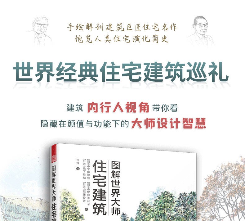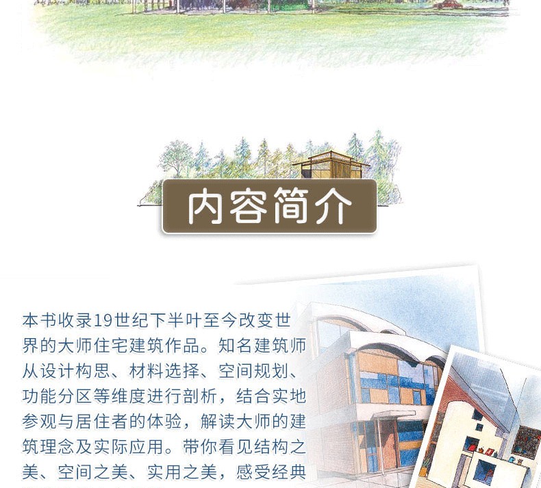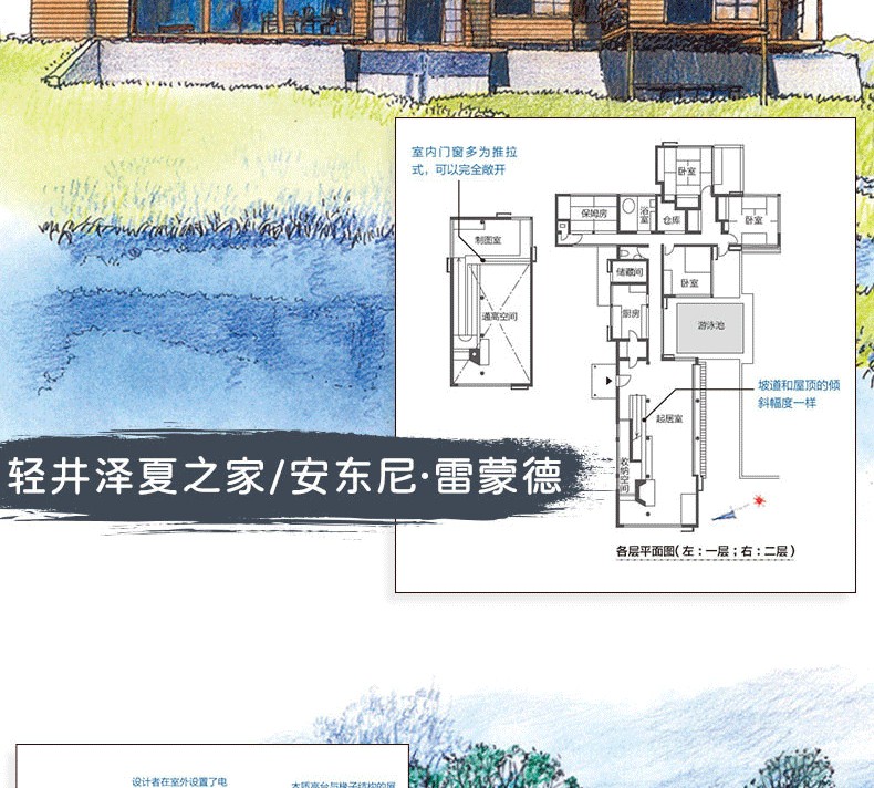 本書介紹了60多座世界著ming的住宅建築,包括31座掀起世界變革的住宅建築、15座日本經典住宅,以及9種紮根當地環境的住宅,卷末集錦則介紹了日本建築發展歷程中11種建築的由來。此外,本書的建築家專欄收錄了22位建築大師的簡要介紹。書中先對住宅進行總體介紹,然後分別就其具體的設計精彩之處進行解析,還搭配了平面圖,分析住宅內部格局的佈置,以供讀者參考。本書圖片採用手繪形式,圖文精美,文字精煉,可閱讀性較強。通過圖文對照,讀者不但可以看得見此住宅的內外設計,還可以感受到居住在其中的人文生活。