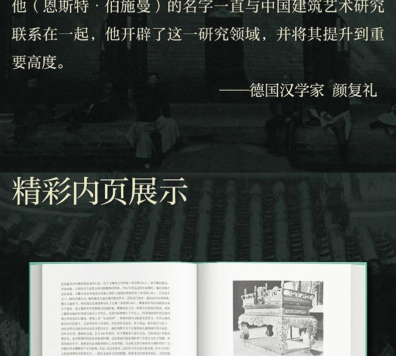 本書是《中國建築與宗教文化》第二卷,初版於1914年,共收錄200餘幅手繪圖和照片,40餘萬字的描述和闡釋。作者以祠堂為研究對象,參照歐洲梳理建築及藝術文物的思路,按地域省份分類,細緻而又深刻地描述了中國黃帝祠、張良廟、二郎廟、武侯祠、關帝祠、李杜祠、文廟等各級各類祠堂的概況、歷史、建築特點及宗教文化,闡述了中國人的人與自然、建築、宗教和諧統一的世界觀和美學觀。