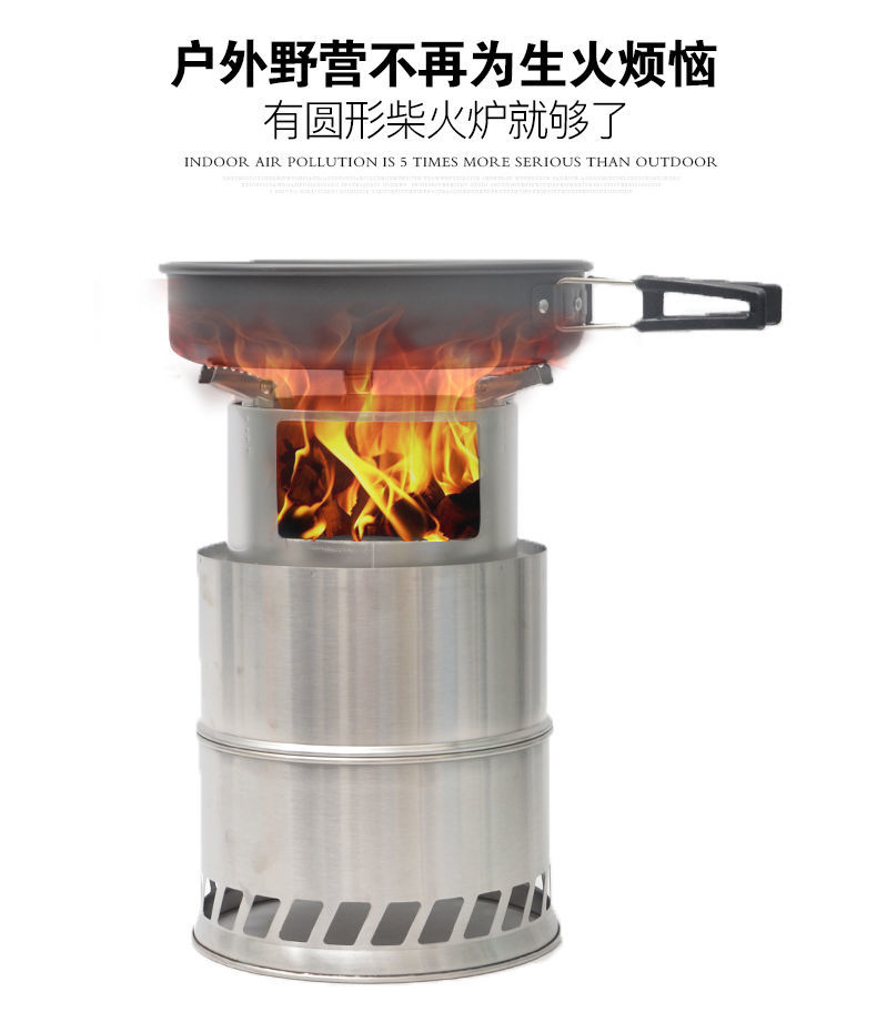 戶外便攜式折疊圓形柴火爐 野外木炭爐固體酒精爐 加厚不銹鋼野炊爐具