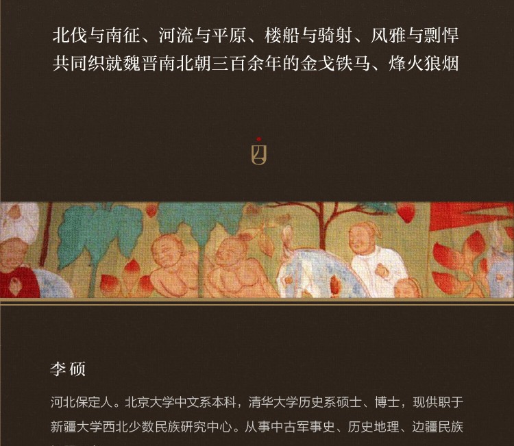 李碩,河北保定人。北京大學中文系本科,清華大學歷史系碩士、博士,現供職於新疆大學西北少數民族研究中心。從事中古軍事史、歷史地理、邊疆民族問題研究。著有《鐵馬樓船北府兵》《從大漠綠洲到玉石山谷:南新疆探索圖文志》等,在《中華文史論叢》《學術月刊》《歷史地理》《敦煌研究》等刊物發表學術論文多篇。