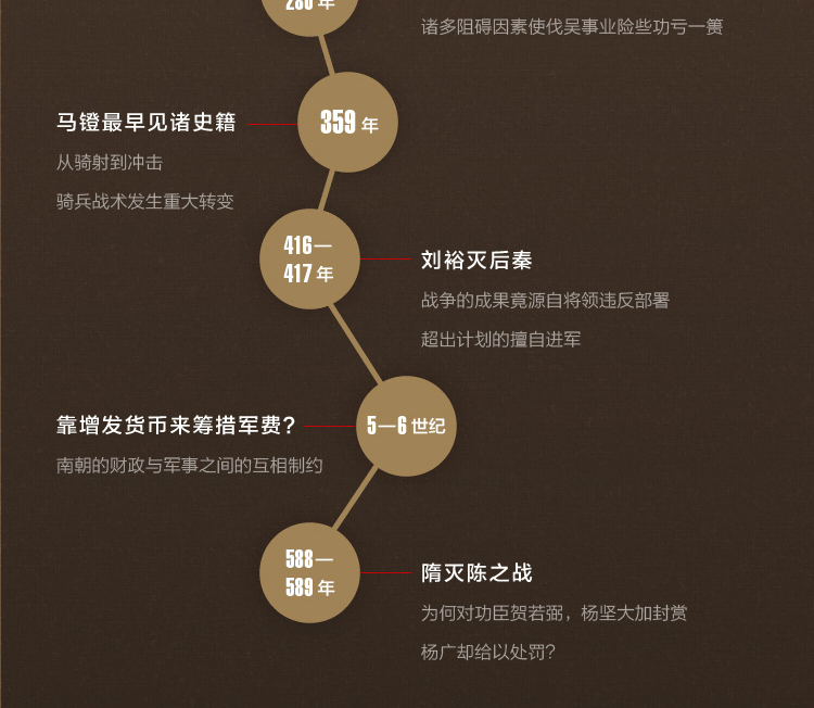 作者李碩試圖還原古代冷兵器戰爭的本來面貌,探討戰爭、戰役背後的諸多製約因素,並從戰爭的角度研究歷史與社會。他的基本觀點是:發生南北分裂的根源,在於北方少數民族騎兵擁有了對中原王朝步兵的壓倒性優勢,而南北分裂之所以維持近三百年,與中國南北方的地理環境差異有重要關係,即南方水網叢林地帶不便於北方騎兵作戰,而南方軍隊依賴水運,不適應乾旱的北方環境,所以南北政權都長期難以實現統一;至於南北分裂的終結,則是南北方社會與政治整合的產物,即北方少數族政權在充分的中原化(漢化、封建化)之後,更有效地利用了漢地的軍事資源與軍......