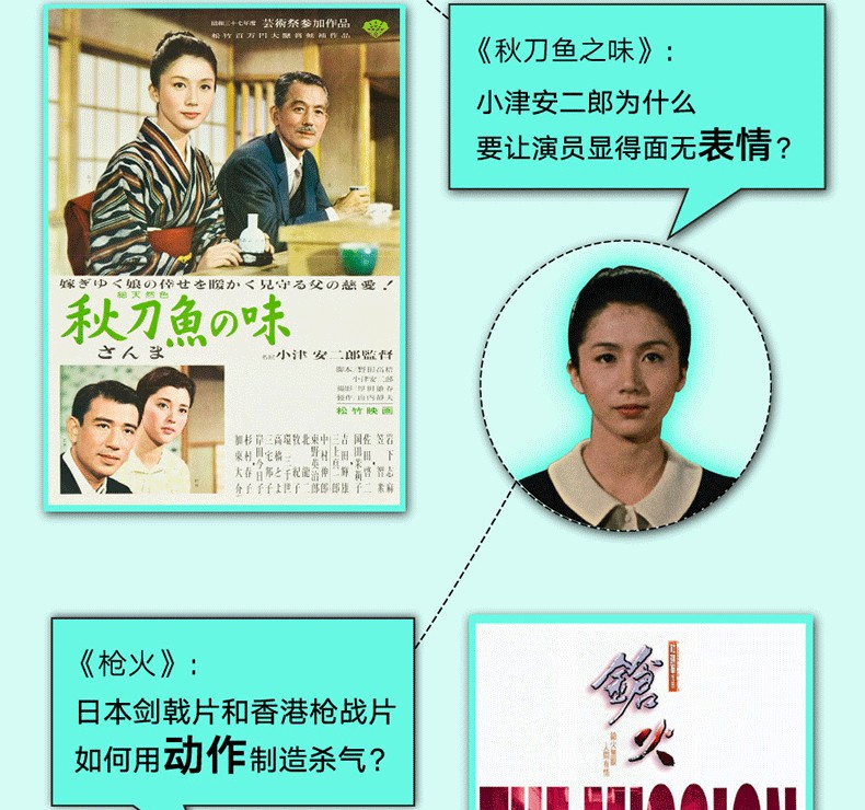 本書援引了大量歐美、日本經典影片,介紹了黑澤明、川端康成、夏目漱石、谷崎潤一郎等同時代名家的創作理念。通過閱讀,讀者可以一窺這位家庭題材大師的寶貴經驗,領悟含蓄雋永的“小津調”背後的秘密。