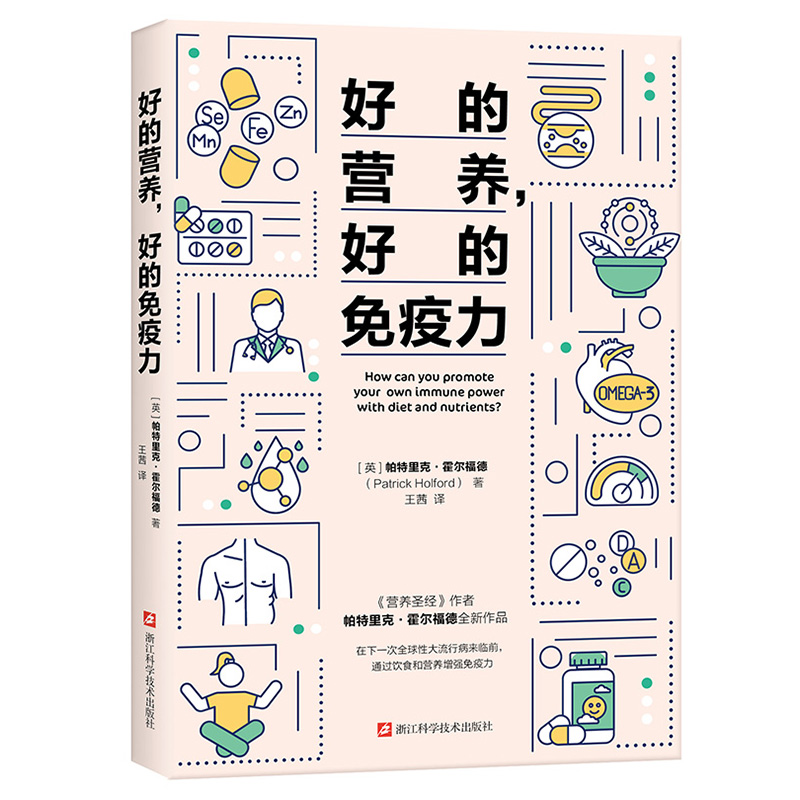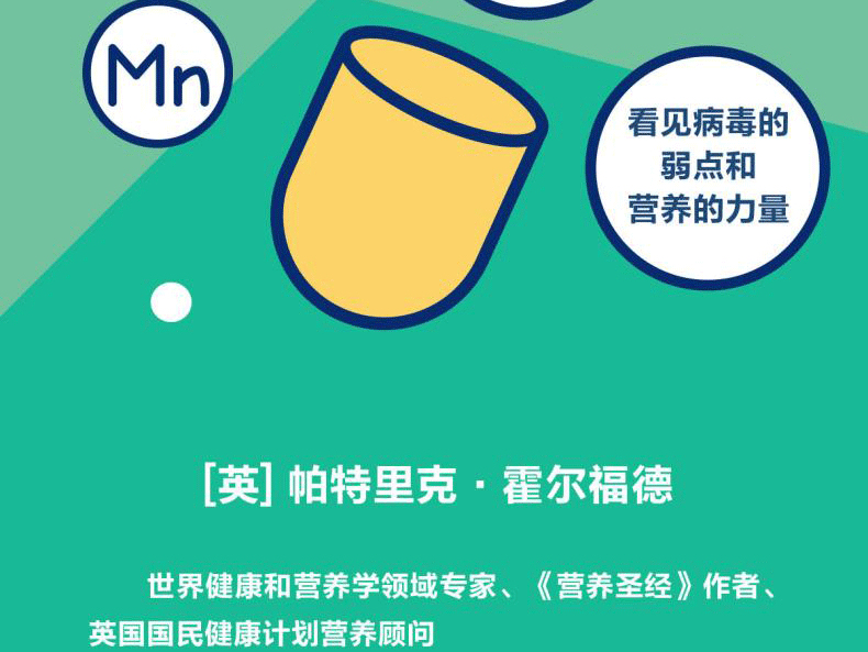 在這本書裡,世界健康和營養學領域專家帕特里克•霍爾福德從病毒的致病機制和人體的免疫防禦機制入手,揭示了對抗病毒感染的6大策略,以及一系列營養物質——維生素C、維生素D、礦物質(硒和鋅)等與人體免疫力之間的關係。他深入地分析了通過飲食和營養有效增強免疫力的方法,並提供了日常飲食及營養補充計劃,教你用飲食和營養戰勝病毒,讓你在平時預防疾病、在生病時快速恢復健康!