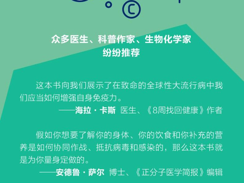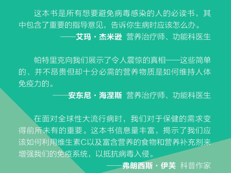 “能使你成功地學會使用簡單的、並不昂貴但卻十分必需的營養物質維持免疫力。”