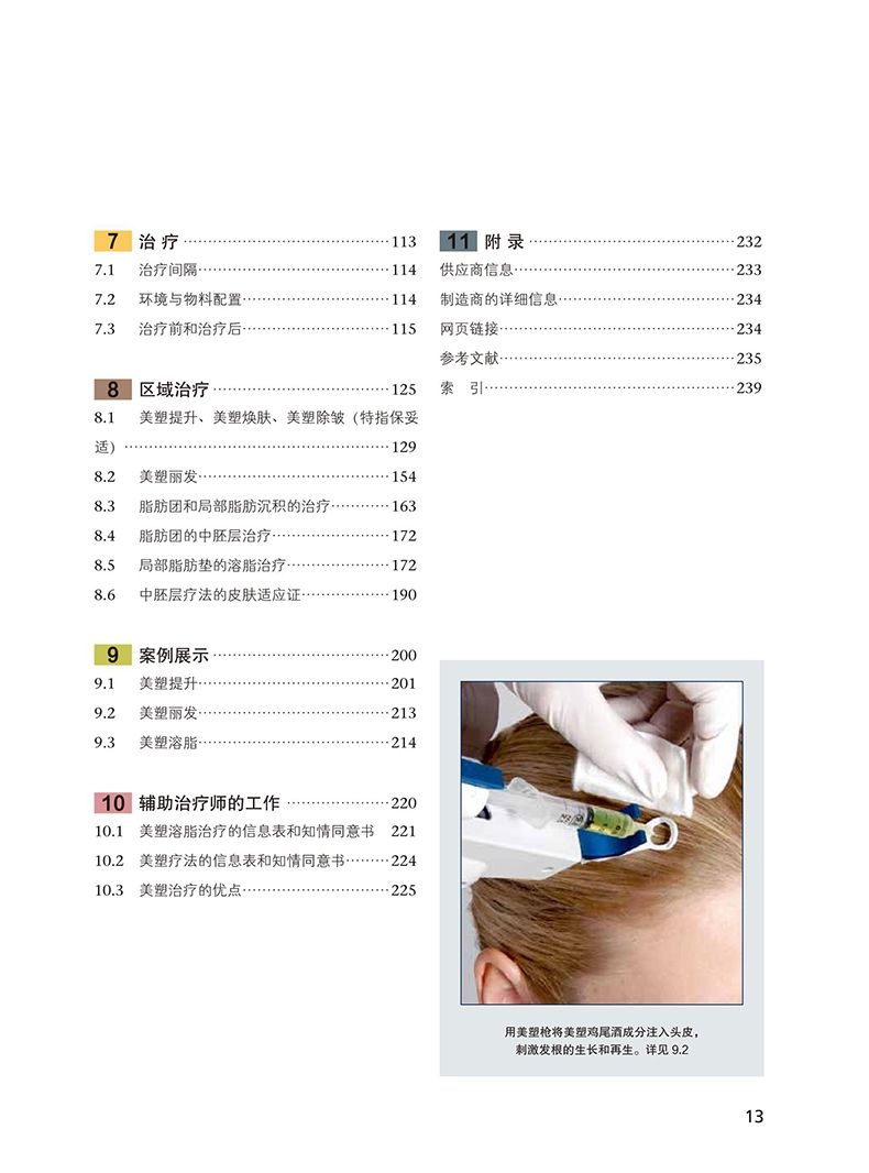 美塑療法是一種用途非常廣泛,很容易被用戶接受的美容方法。本書中詳細描述這種醫學美容技術。包括美素療法的定義、活性物質、患者的檔案和流程管理,不良反應、材料和技術、諮詢、治療、區域治療、案例展示、給治療師的輔助資料產品製造商和供應商資訊。內容全面而實用。是一本普及美塑療法的知識和操作技巧的參考書。