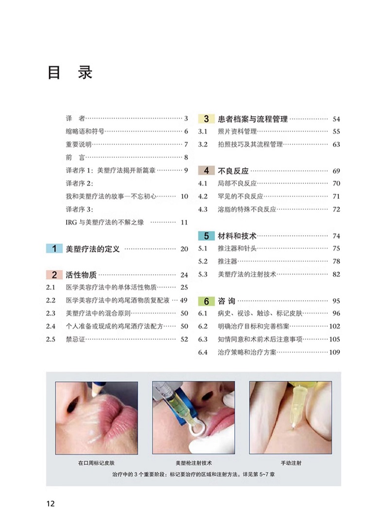這是一本結合解剖全面講解如何更安全地進行微整形注射的教科書。書中先介紹了面部的解剖知識,然後介紹了填充注射時的面部解剖知識,手繪圖配尸解圖,更為形象地為讀者展示注射部位的解剖注意事項,並在介紹解剖知識的同時,介紹了可能會發生的並發症以及如何避免的方法。
