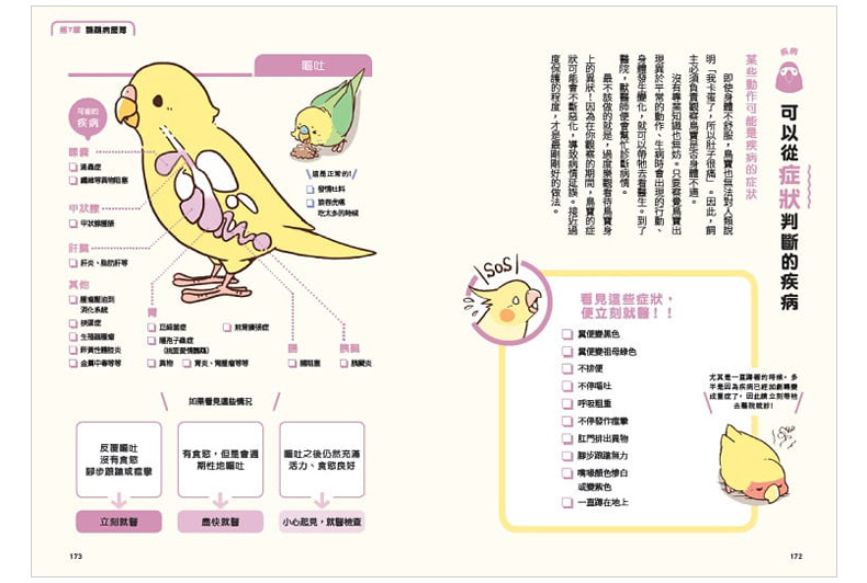 本書請到「鳥類專科醫院院長」監修,並以可愛「全彩圖解」的方式告訴飼主基本的飼養方法之外,為了讓飼主明白日常健康管理、鳥寶常見疾病,以及適當的就醫時機,更選擇以「飼養時該注意什麼地方?」為重點進行解說。