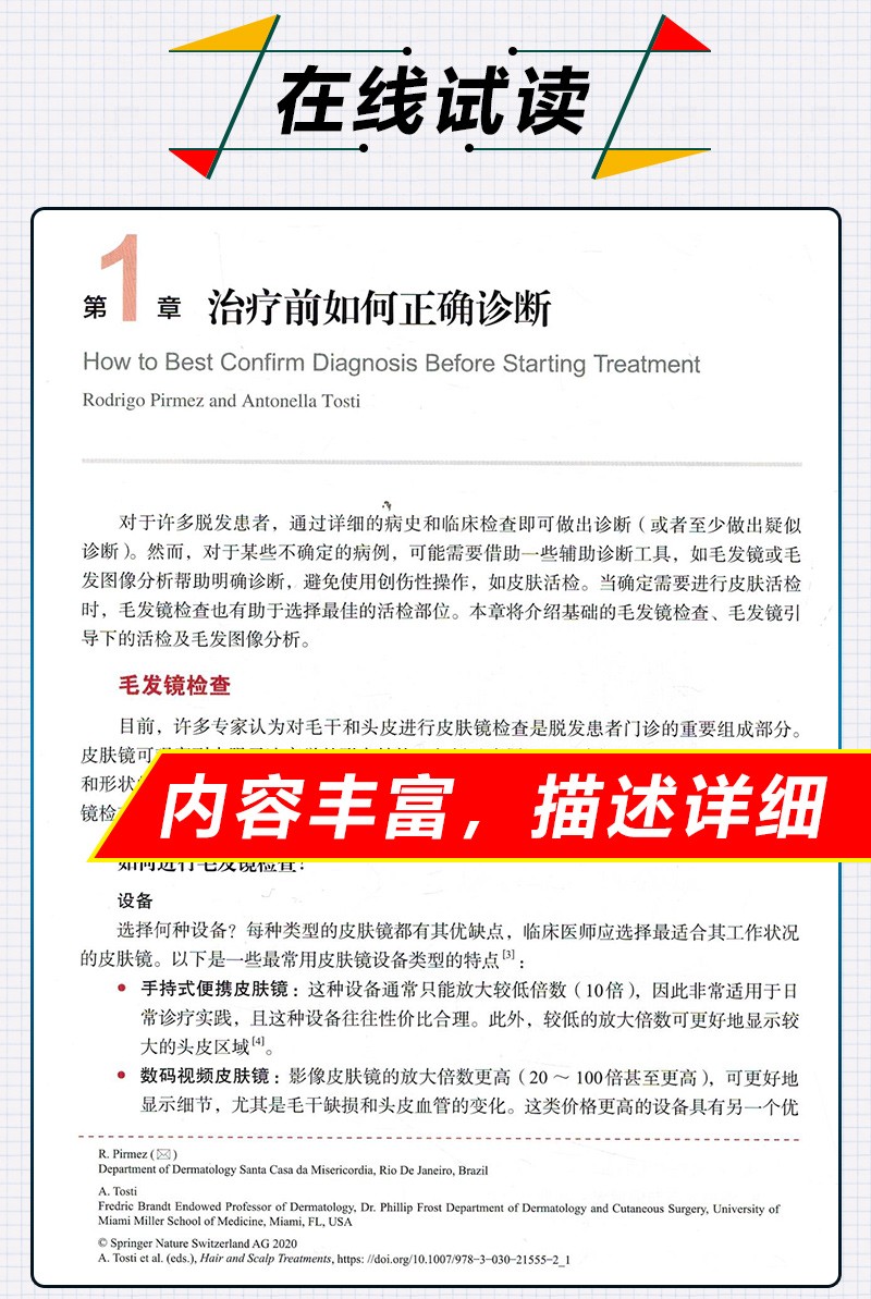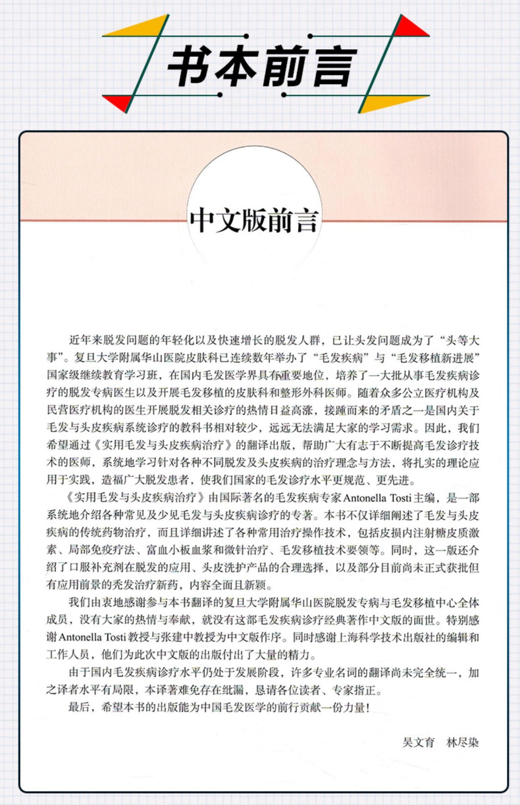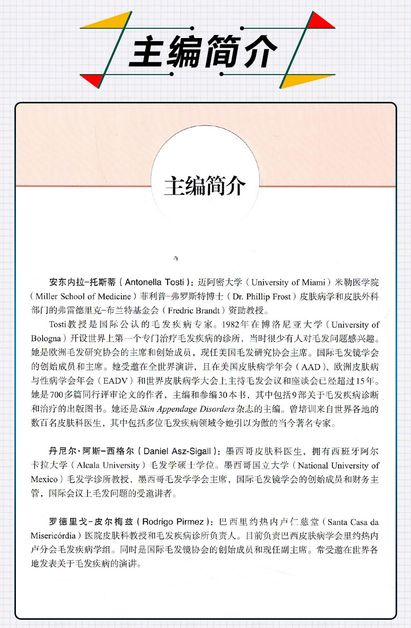 " 本書可幫助廣大有志於不斷提高毛髮診療技術的醫師們,系統地學習針對各種不同脫髮以及頭皮疾病的治療理念與方法,將紮實的理論應用於實踐,造福廣大脫髮患者,使我們國家的毛髮診療水平更規範、更優選。"
