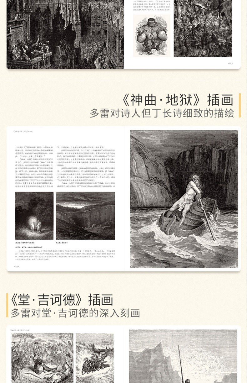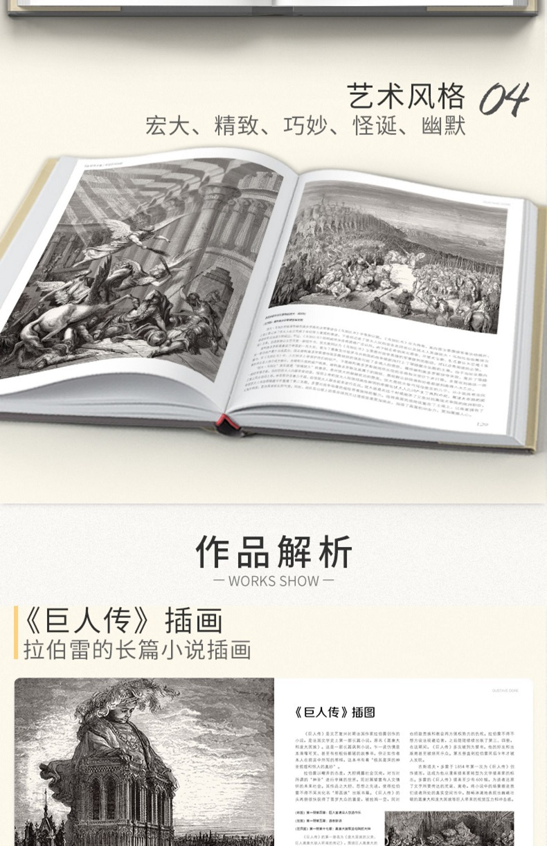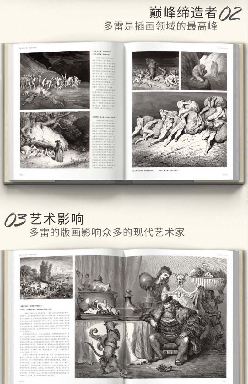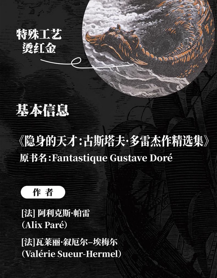 分別來自羅浮宮和法國國家圖書館的兩位法國編輯從多雷的上萬幅插圖作品中精選出那些極其重要、視覺效果甚是強烈、很能代表他藝術風格的作品,兩人分工合作,前者帶讀者徜徉在多雷藝術作品背後的文學幻想和文藝圈八卦裡,後者娓娓娓道來多雷藝術作品背後的文學幻想和文藝圈八卦裡,後者娓娓道來多雷版的高超技製作高超技。讀者會感覺自己站在連結古典和前衛的橋樑之上,一起沉浸在多雷的永恆魅力中吧!