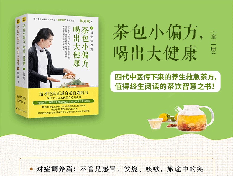 “對症調養篇”共有94款對症調理茶方,專為不同體質、不同人群精心配伍。不管是在出差旅行中面對突發健康狀況,還是上班、居家,無論任何年齡的人,都能在書中找到為你度身定做的各種應急茶飲,小疾病快速調理茶方、減肥瘦身茶飲、祛痘祛斑和美白茶飲……簡單方便,美味,功效卓著。