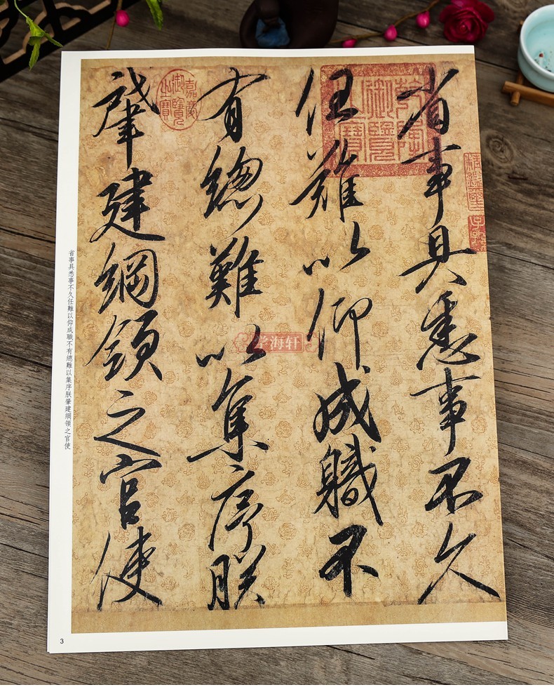 《彩色放大本中國知名碑帖?宋徽宗真書千字文》將“書譜”放大印出,以便於鑑賞臨摹。經慎重考慮,編者推出本書,除將原作放大之外,並用太清樓書譜殘本和薛刻本書譜以及停雲館本書譜,對原作缺失部分以及殘損字予以補充,使之成為完璧。為幫助讀者理解這篇書論,特邀請王乃棟先生撰寫“書譜”譯文,並由劉家鼎先生協助校正,一家之言,僅供參閱。