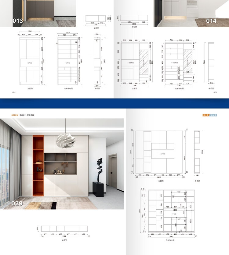 2. 書中詳細標註了櫃體的做法與尺寸,不僅為設計師提供了靈感,也為消費者提供了實際選購參考,幫助他們在定製家具中找到滿足個性化需求的方案。