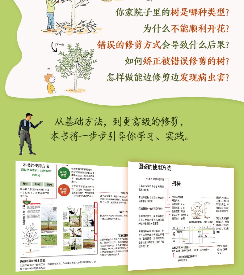 本書以面向普通園藝愛好者的花木修剪技巧為主要內容,以實景圖片和趣味插畫展示花木修剪手法。 Q書共分為6章,分別介紹了落葉樹的常用修剪技法、常綠樹常用修剪技法、花木常用修剪技法、針葉樹常用修剪技法、造型樹修剪技巧及藤本植物的修剪方法。