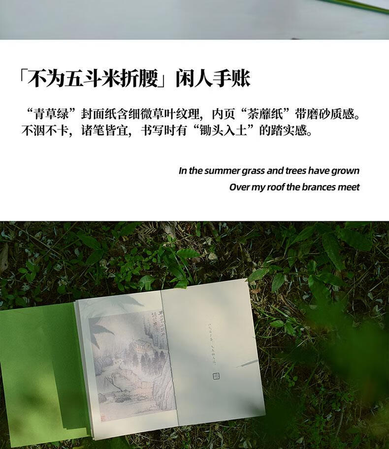 封面印著陶公的田園宣言,內頁穿插陶詩與唐寅畫作。記錄靈感時,可以寫下「盛年不重來,一日難再晨」的警醒之語,或抄錄「俯仰終宇宙,不樂復何如」的豁達詩句。筆尖劃過特種紙的粗獷質感,彷彿能觸摸到陶淵明「衣沾不足惜,但使願無違」的執著。