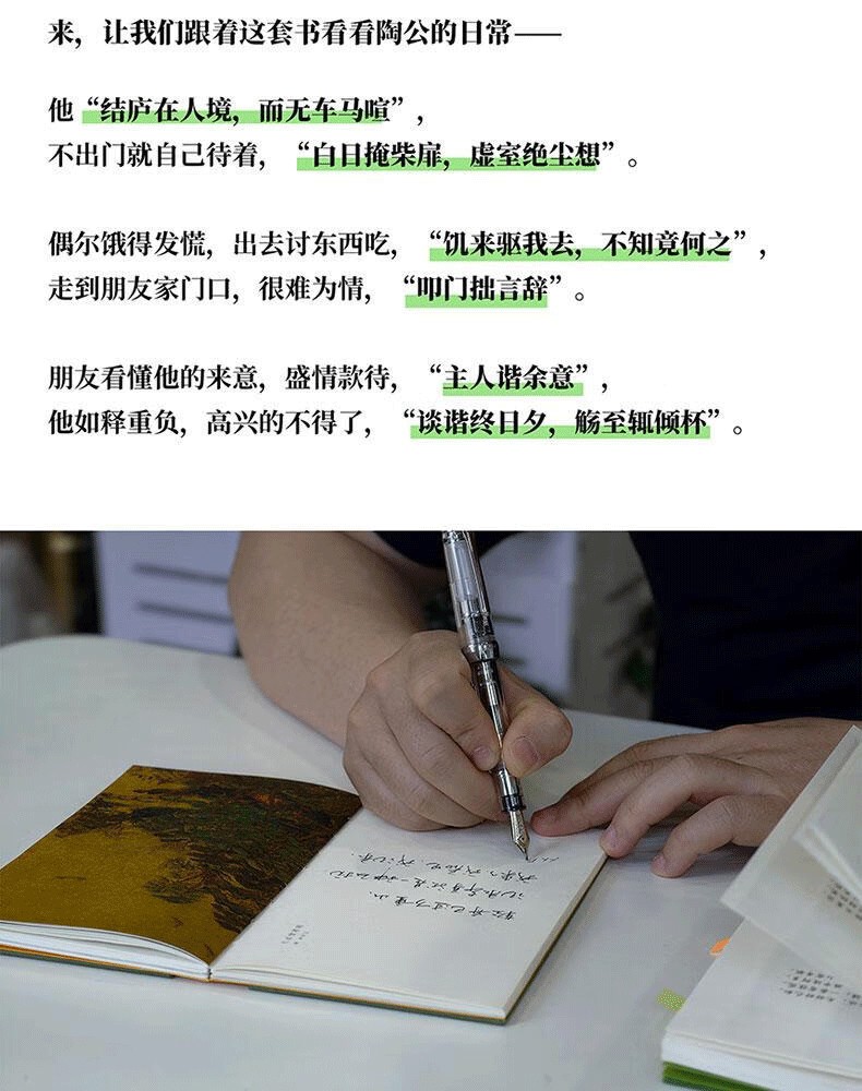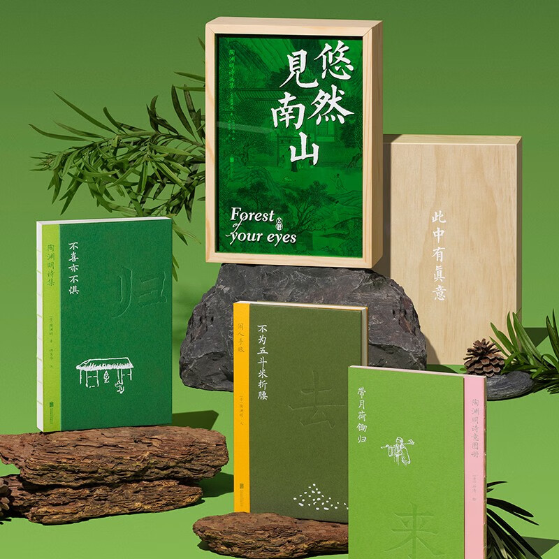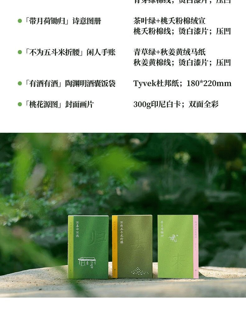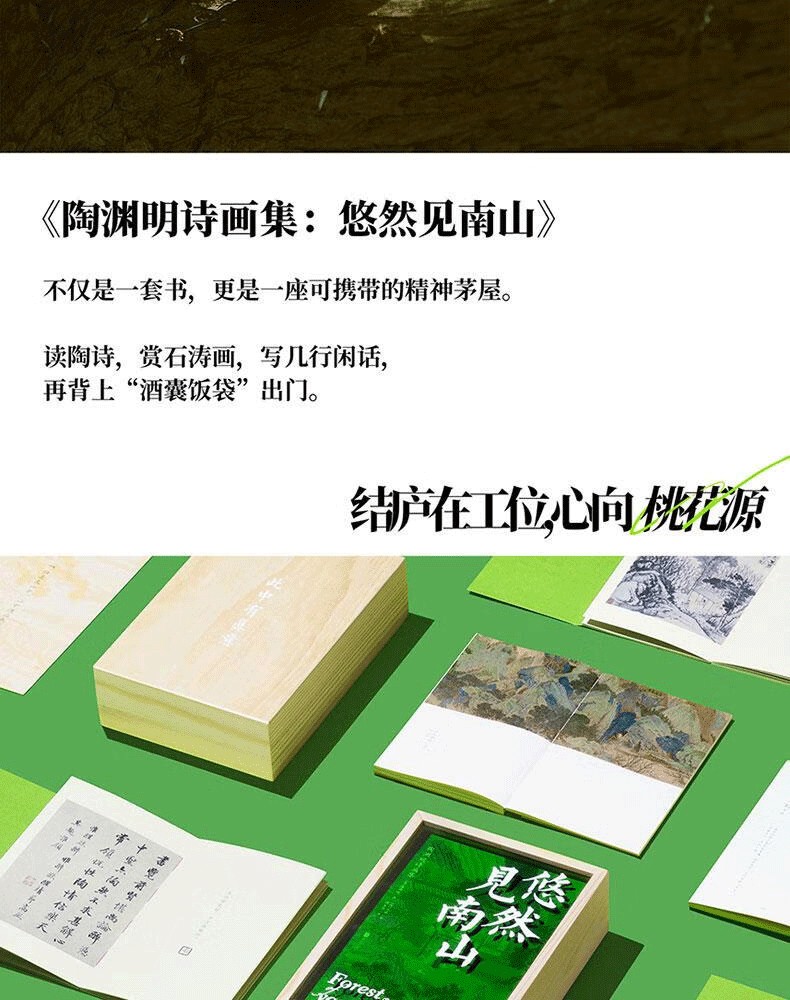 陶淵明詩畫集 《悠然見南山 》精裝典藏版 原木套盒裝幀 裸脊鎖線 附 手賬本+帶月荷鋤歸詩意圖冊+桃花園圖+手提袋