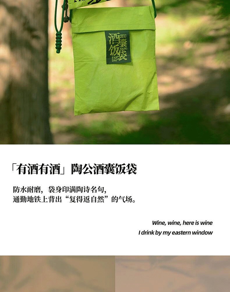 這款收納包採用家設計,印滿陶詩「有酒有酒,閒飲東窗」。一亮相,便在圖書市集成為眾人爭搶的網紅單品。它輕盈耐磨,關鍵的是「有態度」。無論裝書或收納物品皆可,斜挎在身上,你就是整條街瀟灑的魏晉名士。