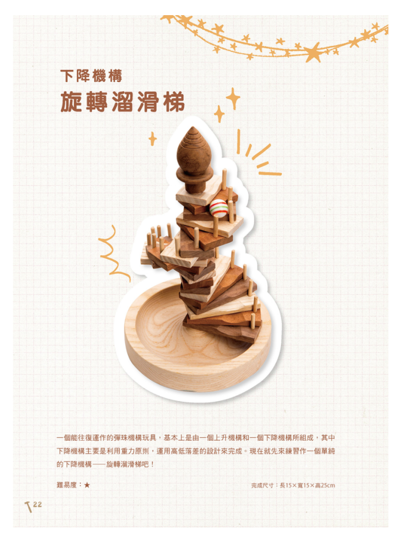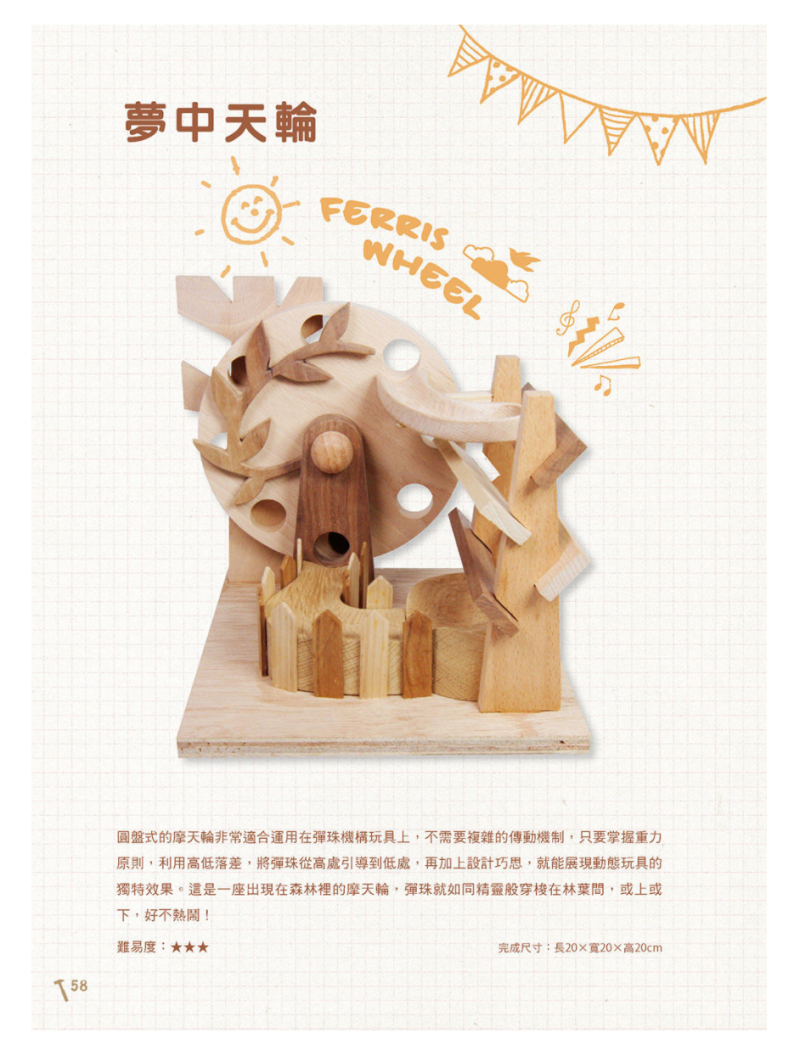 「彈珠台」是一項包含機構與傳動概念的玩具。在木製玩具中,很適合老中青幼各年齡層參與。從設計製作、休閒體驗到作品的玩賞,每一處都吸引著眾人的目光。我的好友蔡淑玫老師與劉玉琄老師多年在這個領域深研有成,在此將一些入門基礎技法集結成書,以期分享給木作同好,提供對此有興趣的您,一條很好的學習途徑。文中還有一些進階的範例,對照基礎技法,讓大家清楚了解由簡入繁的設計思維。絕對是一本值得閱讀與學習的木作玩具參考書籍,您一定能從中找到許多樂趣與喜悅,趕快收藏、動手製作吧!