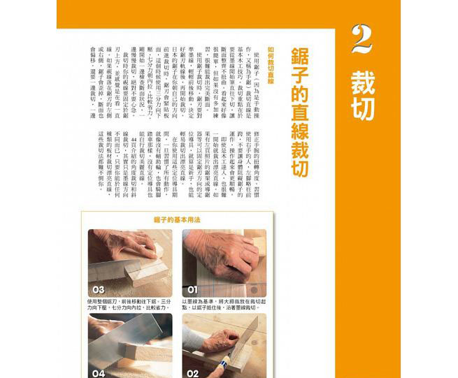 鋸子的直線裁切42/鋸子的角度裁切44/鋸子的斜面裁切44/手提線鋸機的直線裁切45/手提線鋸機的角度裁切&斜面裁切46/手提線鋸機的曲線裁切47/手提圓鋸機的直線裁切48/手提圓鋸機的角度裁切50/手提圓鋸機的斜面裁切51/線鋸機的鋸齒線裁切和曲線裁切52