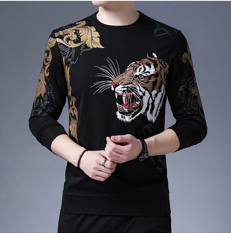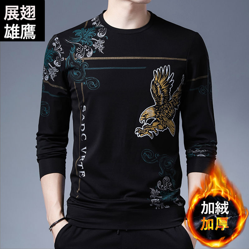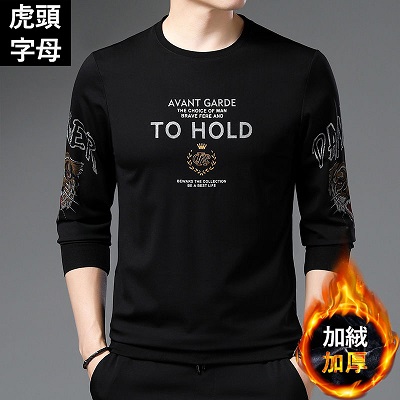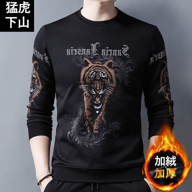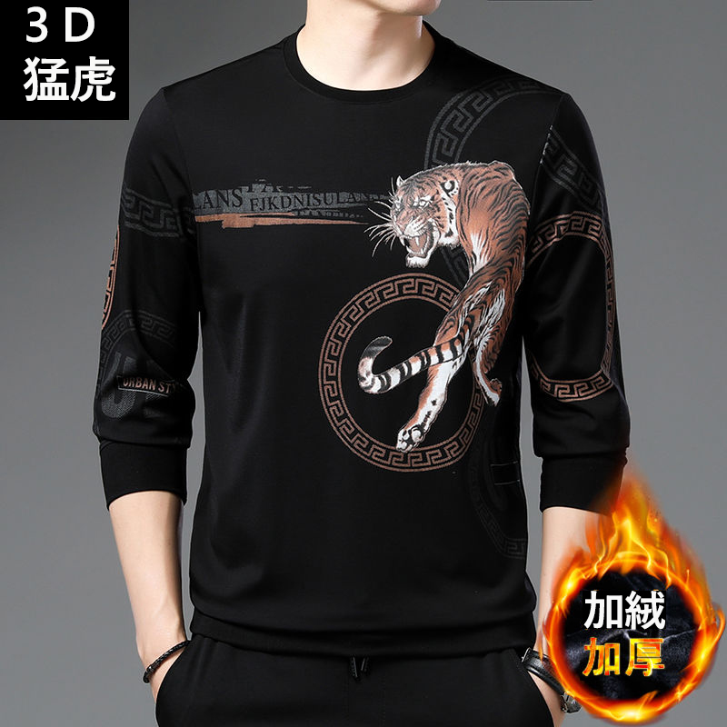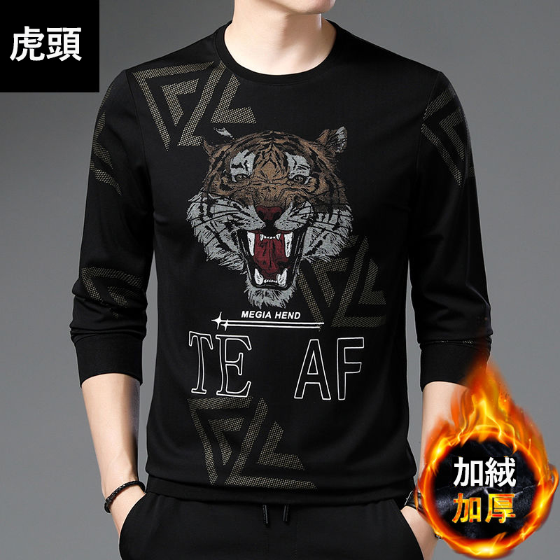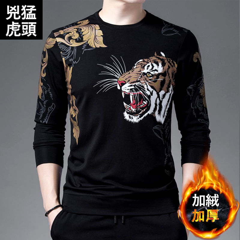 印花虎虎生威 新款男士時尚圓領長袖T卹 春秋季打底衫衛衣 冬款加絨加厚男裝上衣(12款圖案任君選擇)