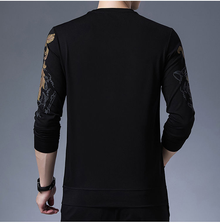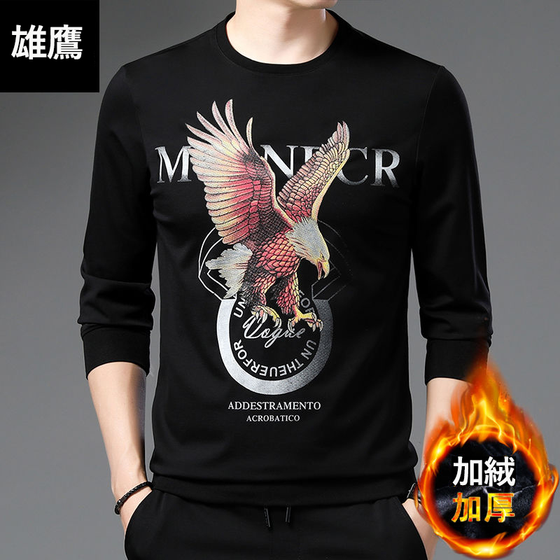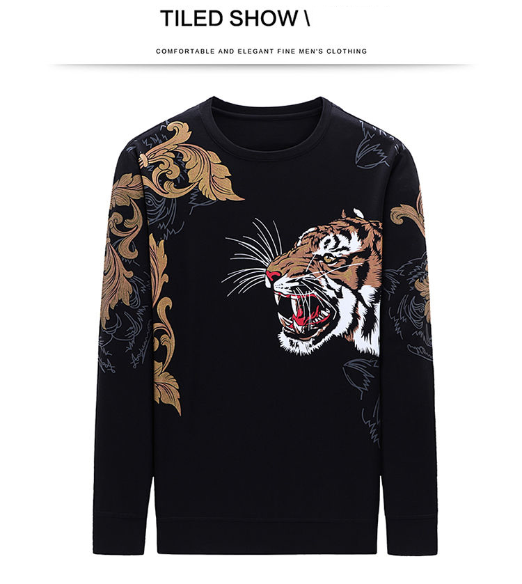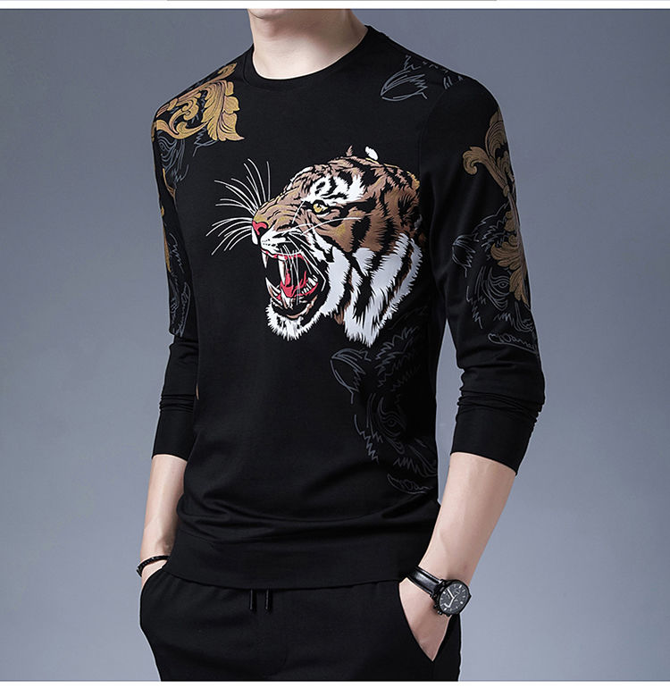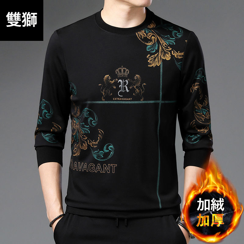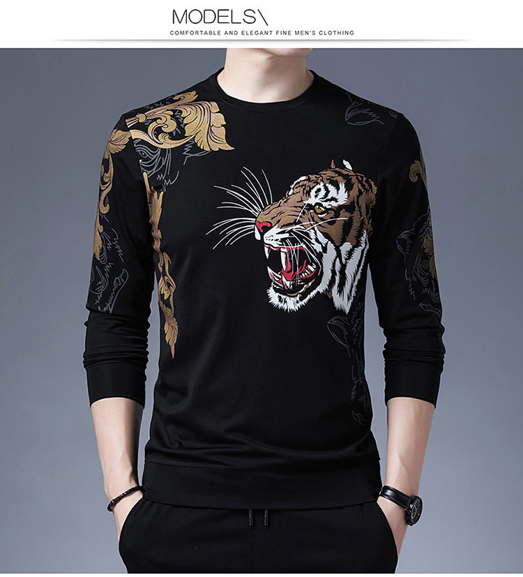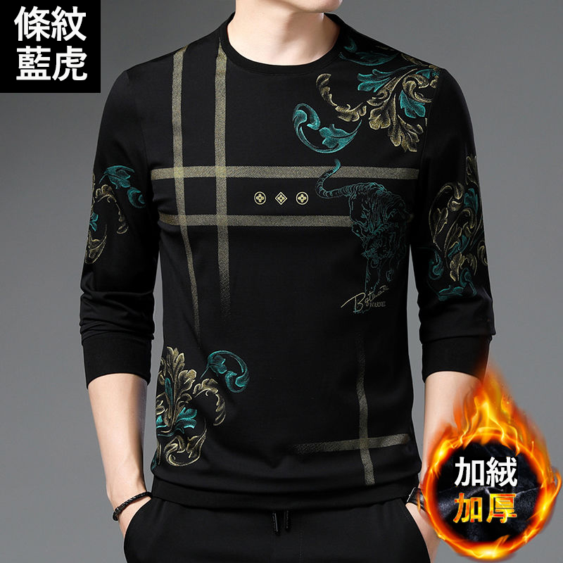 印花虎虎生威 新款男士時尚圓領長袖T卹 春秋季打底衫衛衣 冬款加絨加厚男裝上衣(12款圖案任君選擇)