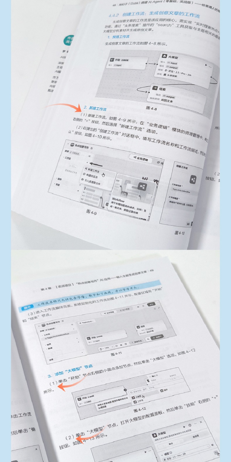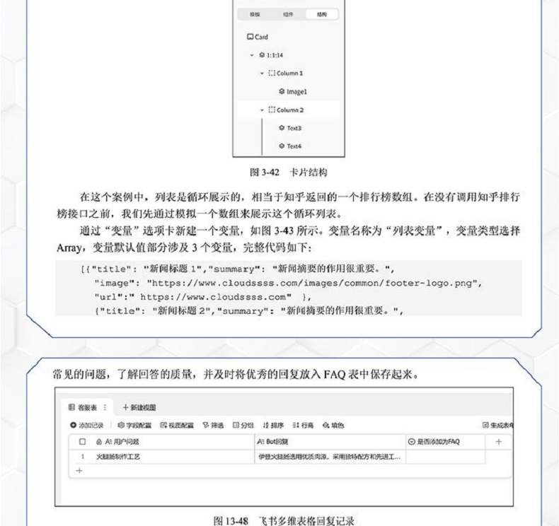 書中每個實戰項目均遵循「需求分析→設計方案→全流程搭建」的邏輯,詳細拆解大模型選型、外掛程式呼叫、工作流程編排、資料庫操作、頁面設計等核心步驟,即使無程式基礎也能掌握。