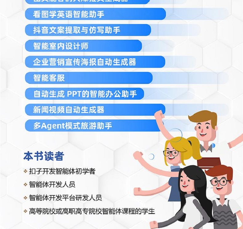 本書聚焦AI智能體(Agent)與AI應用開發,以「理論+實戰」的形式,系統講解如何基於釦子(Coze)平台從零建構實用型AI智能體與AI應用。